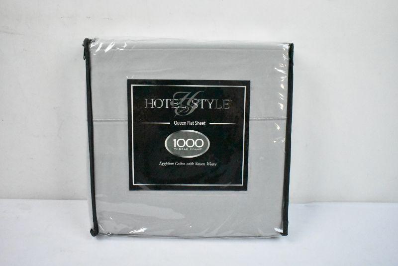 Hotel Style Queen Flat Sheet 1000 Thread Count Egyptian Cotton, Gray "Soft Silver" - New