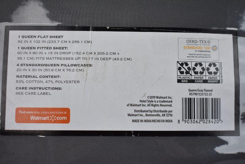 Queen Hotel Style 1100 Thread, Grey Flannel, 6 Pc Sheet Set, $24 Retail - New
