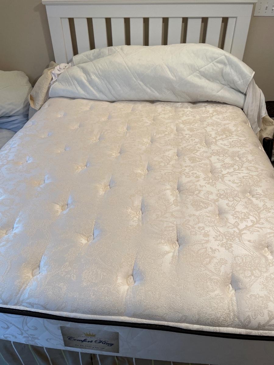 Comfort King Queen mattress and white bed Frame