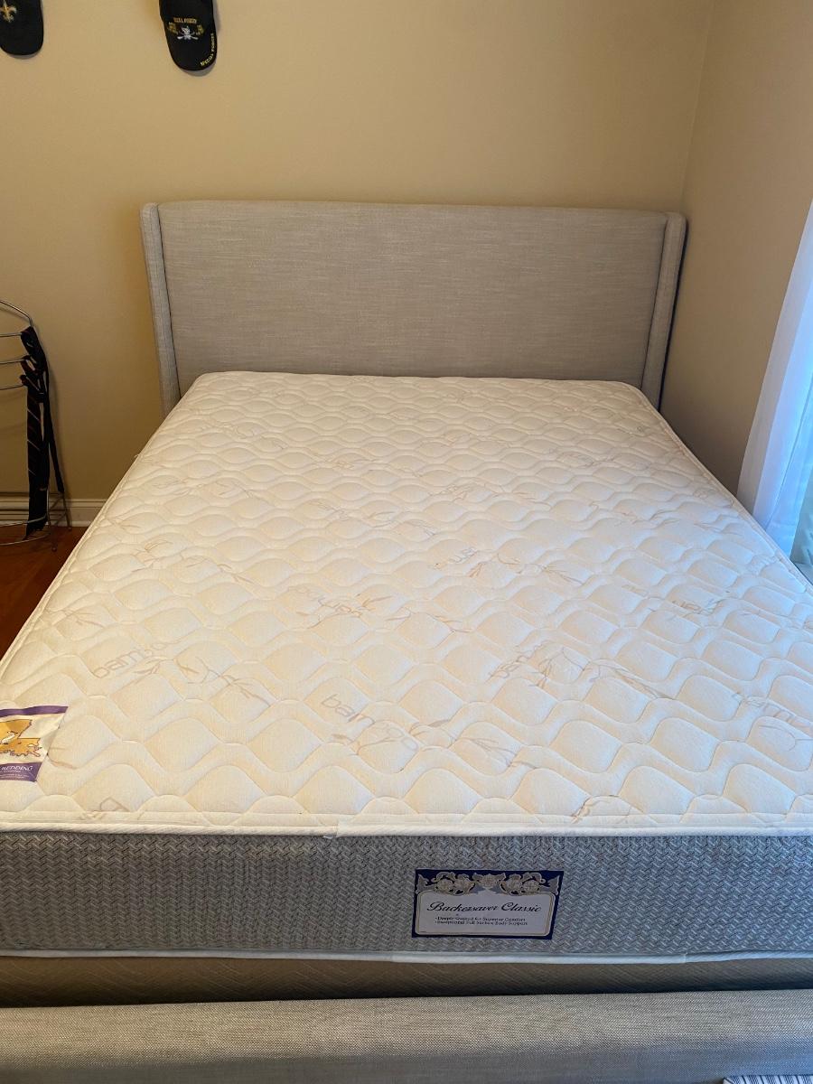 Queen mattress & boxspring, Backersaver Classic, very clean and comfortable, no stains. Deeply quilted, Bamboo cover. Spare bedroom, hardly used