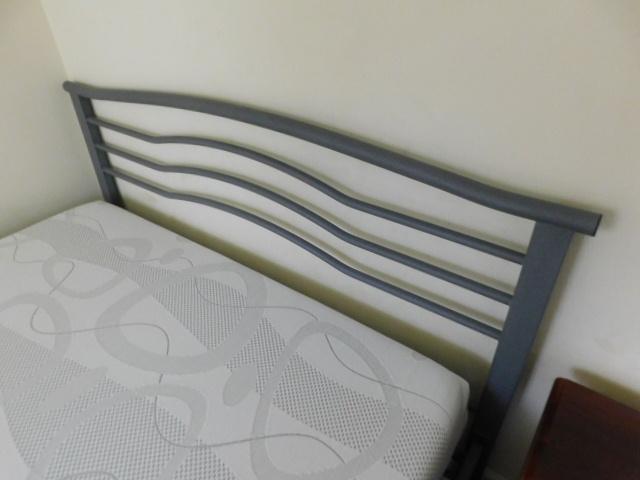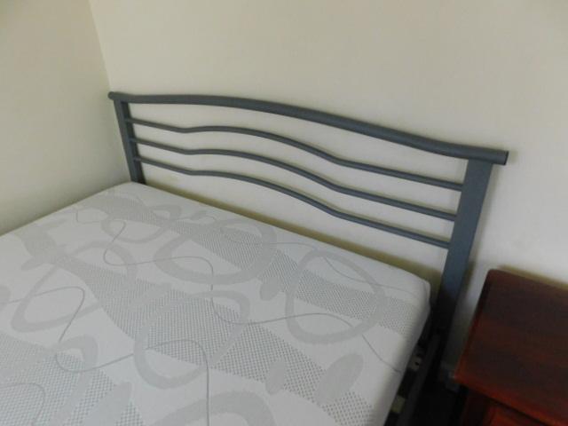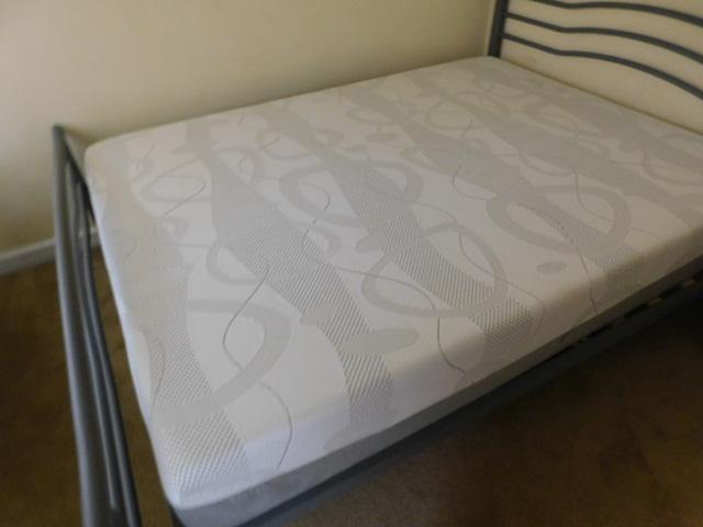 Queen Metal Tube Frame Bed with Memory Foam Mattress. In like new condition and mattress appears to be sound.