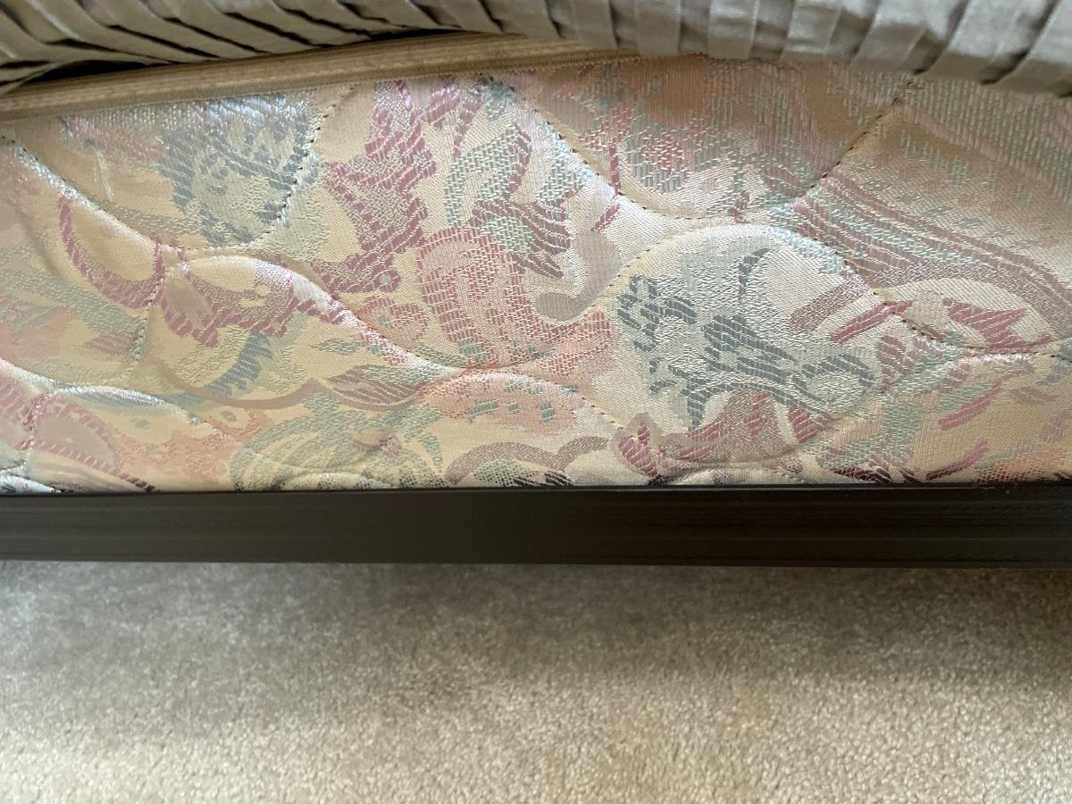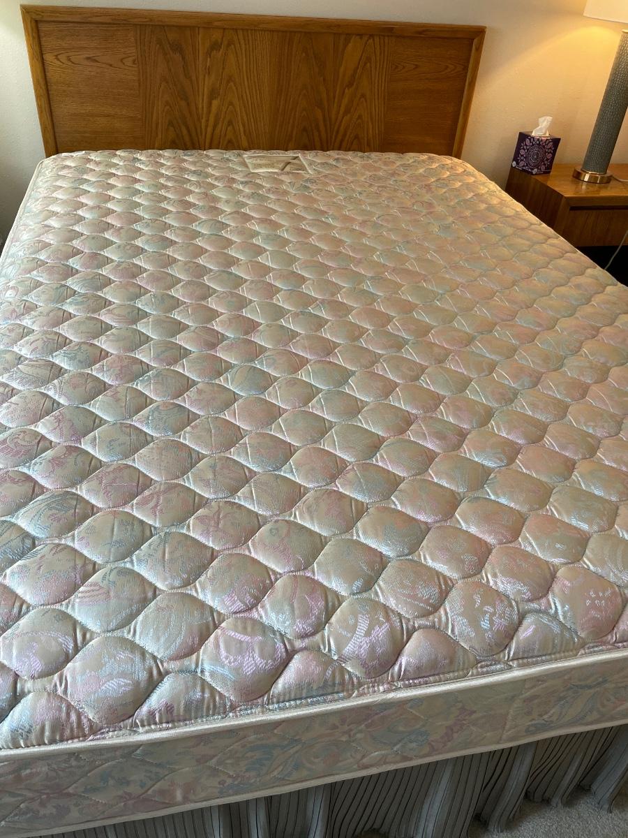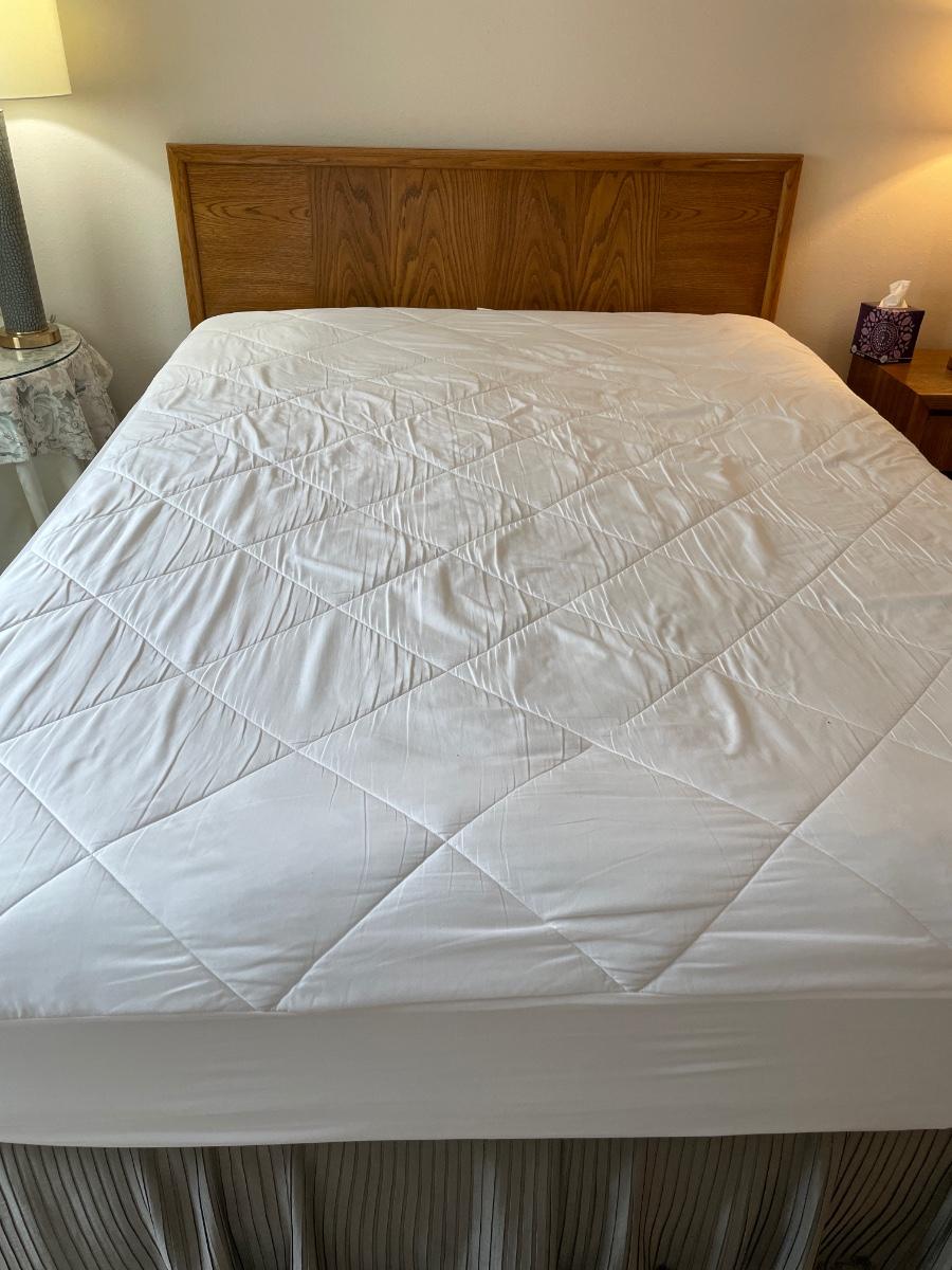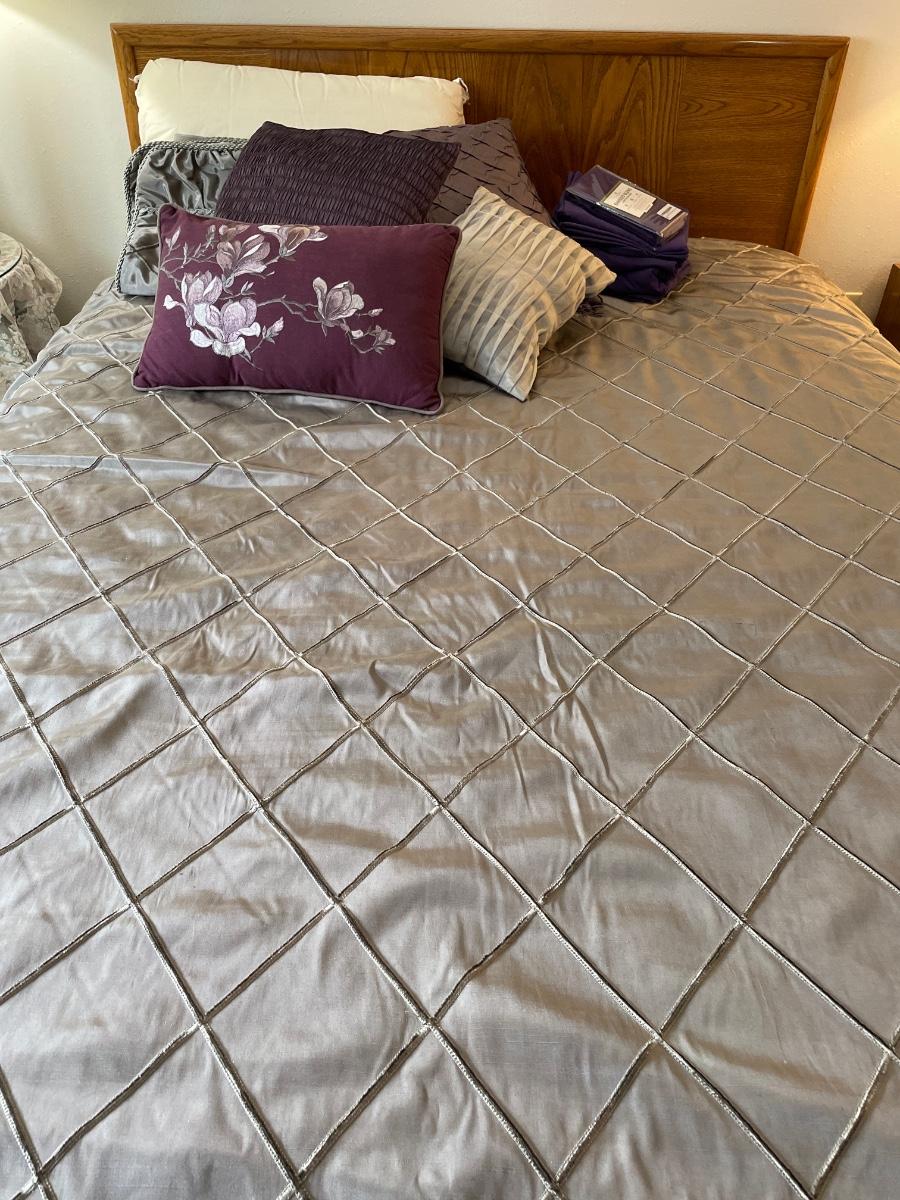 Includes bedding, pillows, box spring, 2 protectors, frame & bed skirt