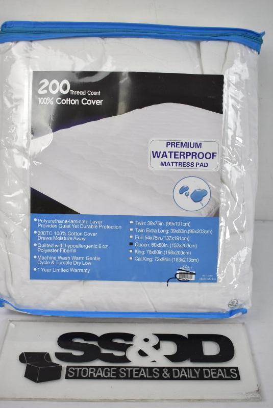 Queen Premium Waterproof Mattress Pad 200 Thread Count, $20 Retail - New