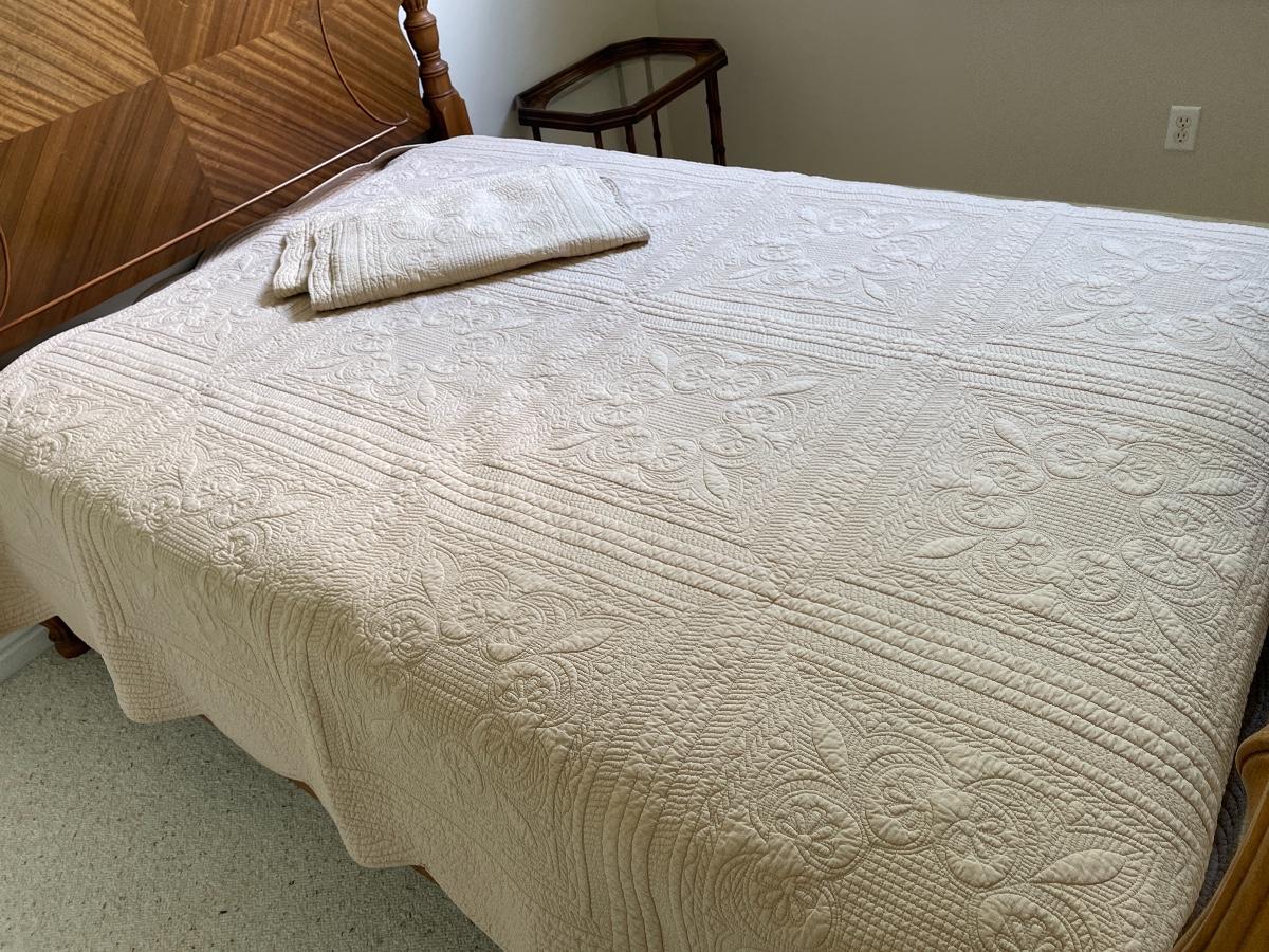 #112 Queen Quilted Cotton Bedspread w/2 Matching Pillow Shams