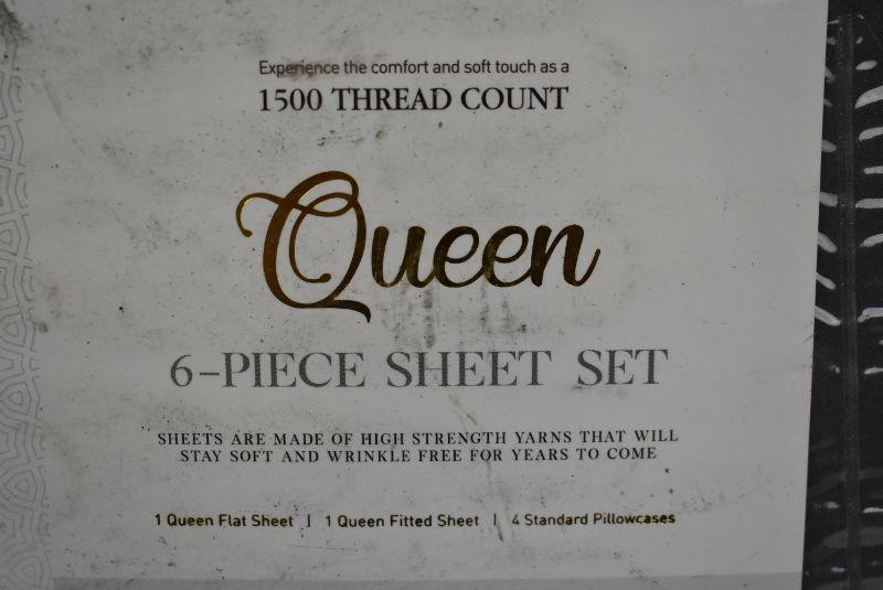Queen Size 6 Piece Sheet Set, Gray, 1500 Thread Count Egyptian Deep Pocket - New