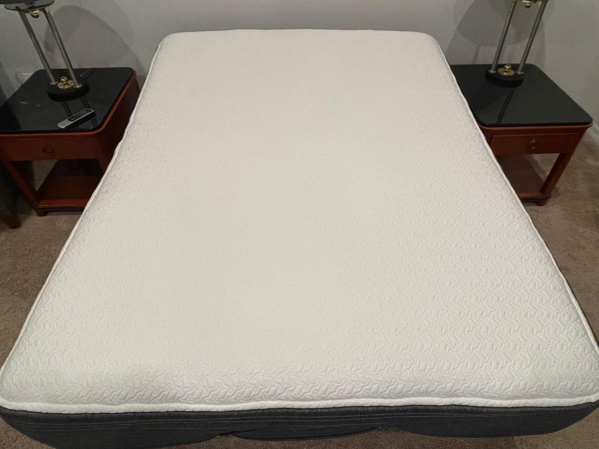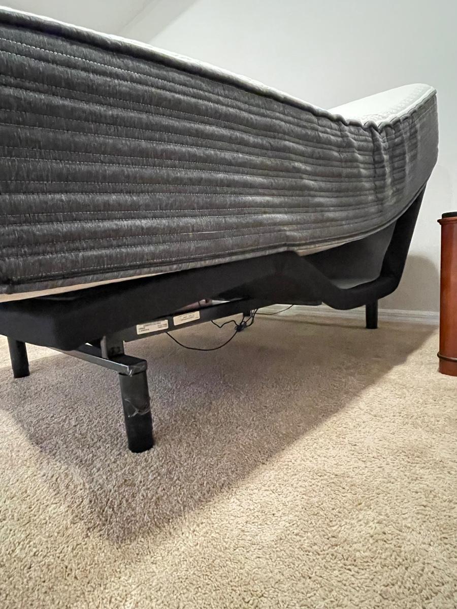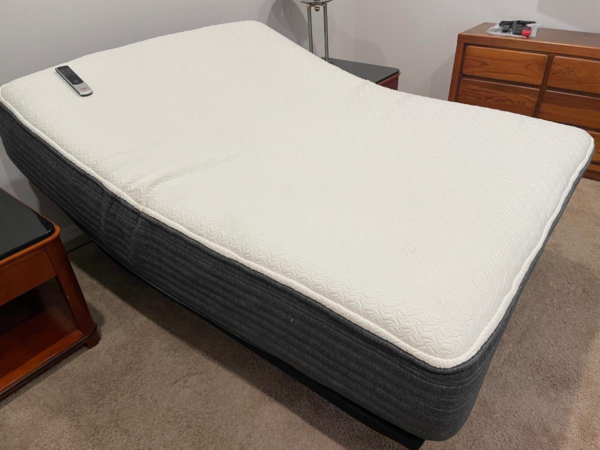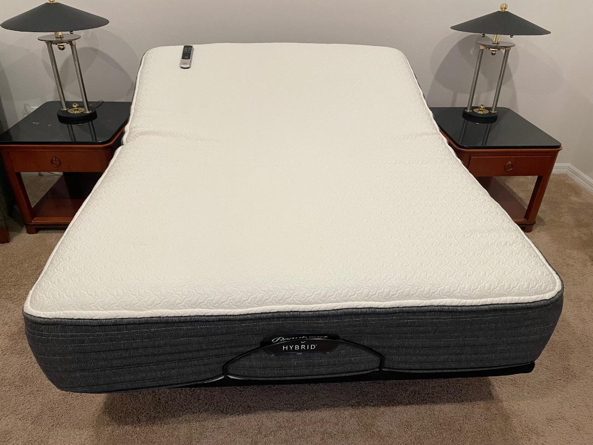 Like New! Queen size adjustable base Beauty Rest Hybrid bed. Very comfortable. Soft to medium support. Mattress was wrapped in zipper protective cover with an additional mattress pad on top. Will include the zipper cover as well as the mattress pad with bed.