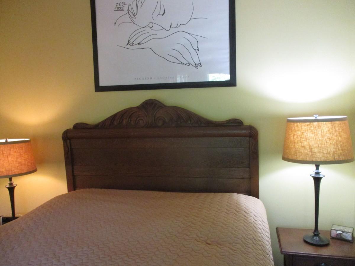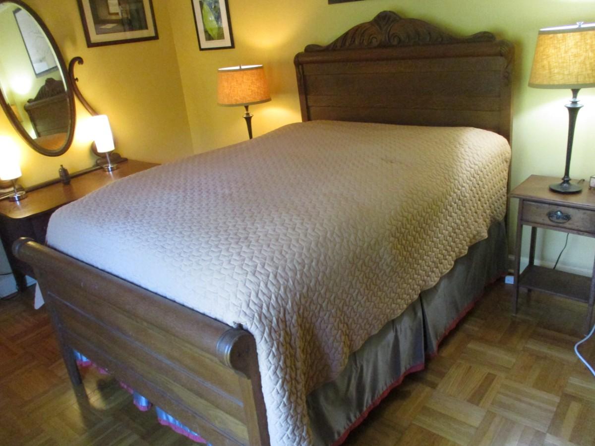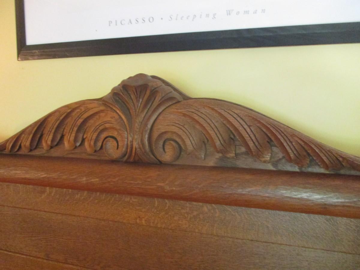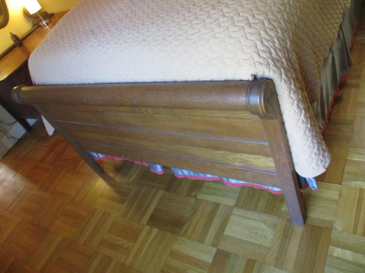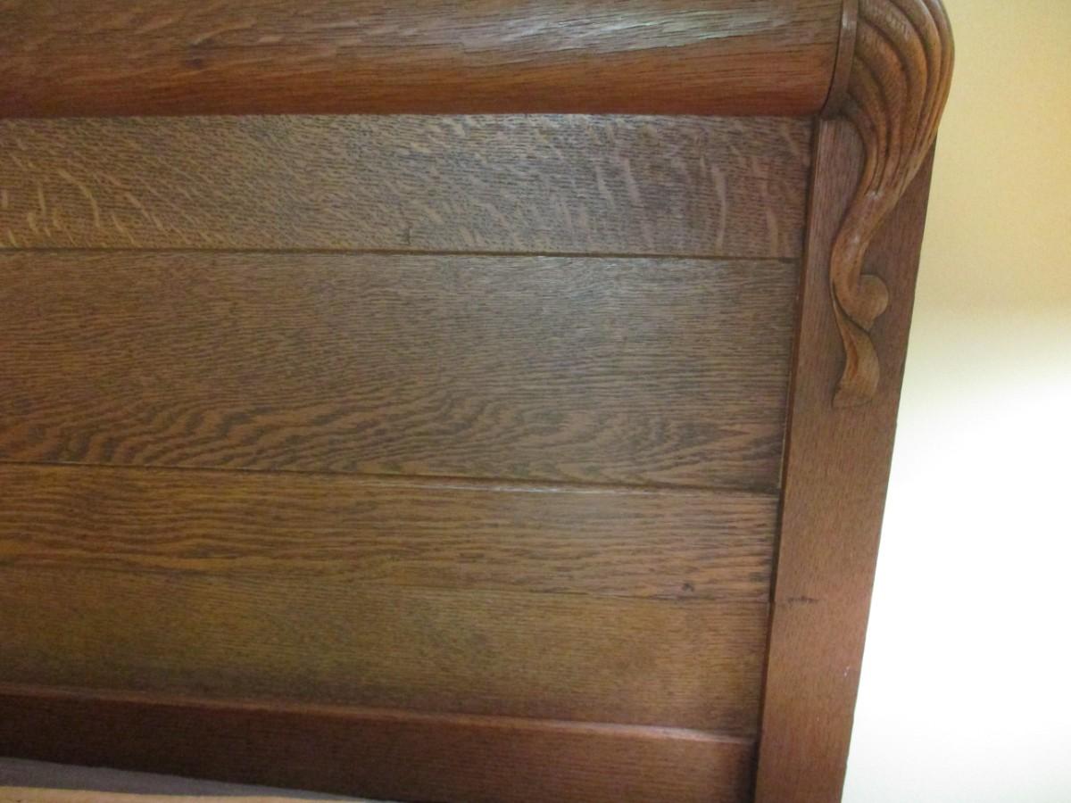 Queen Size Bed with Antique Carved Wood Head and Foot Boards- D