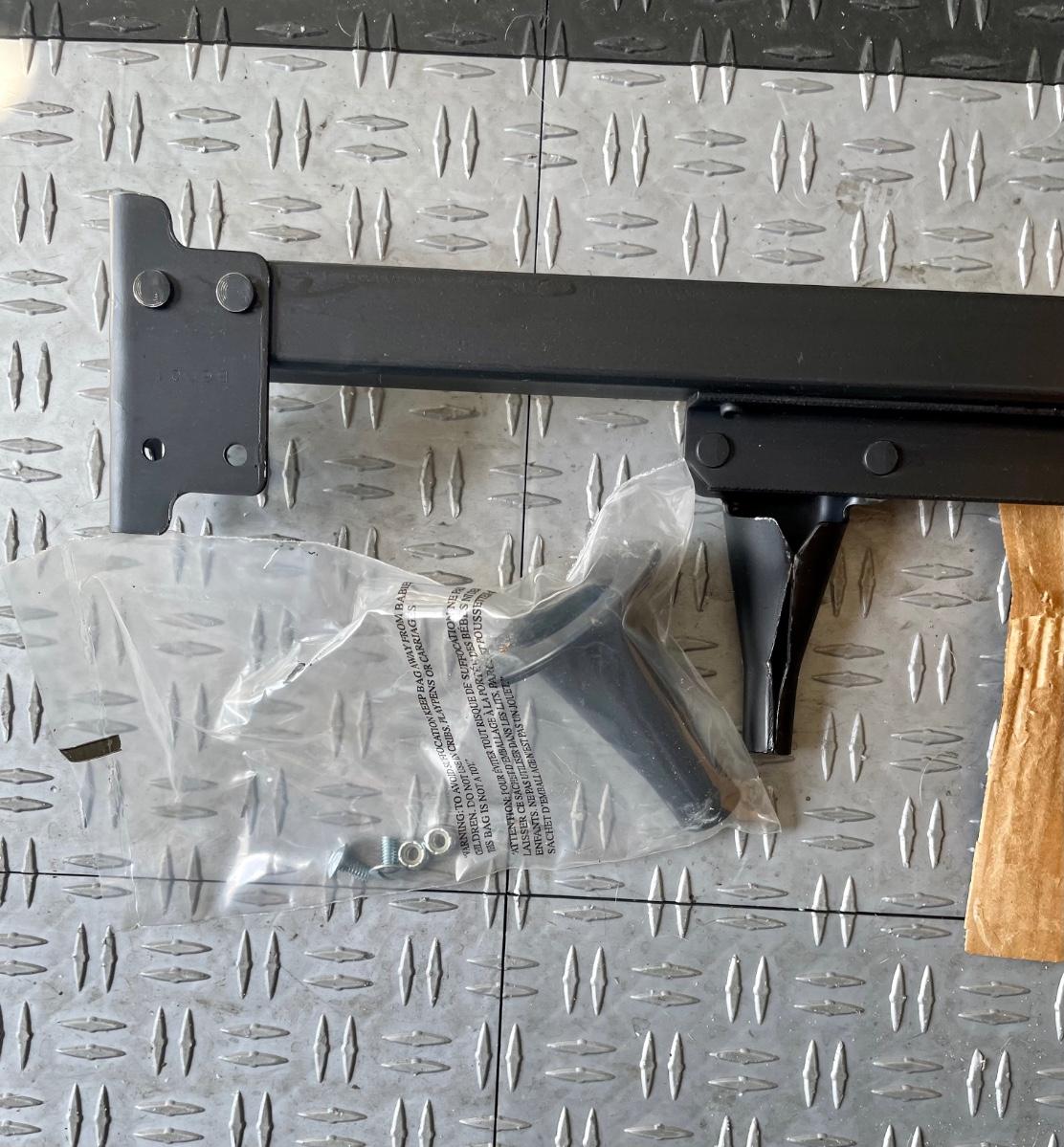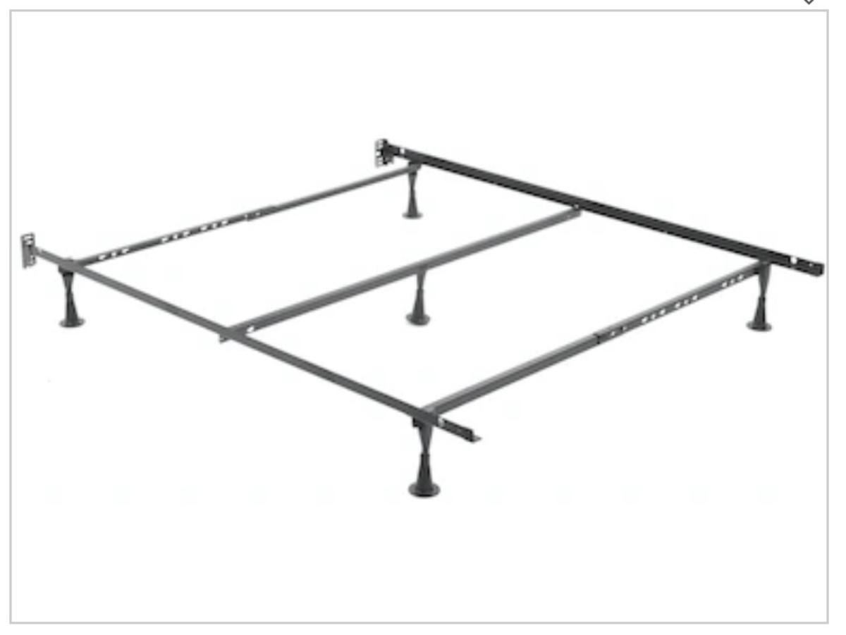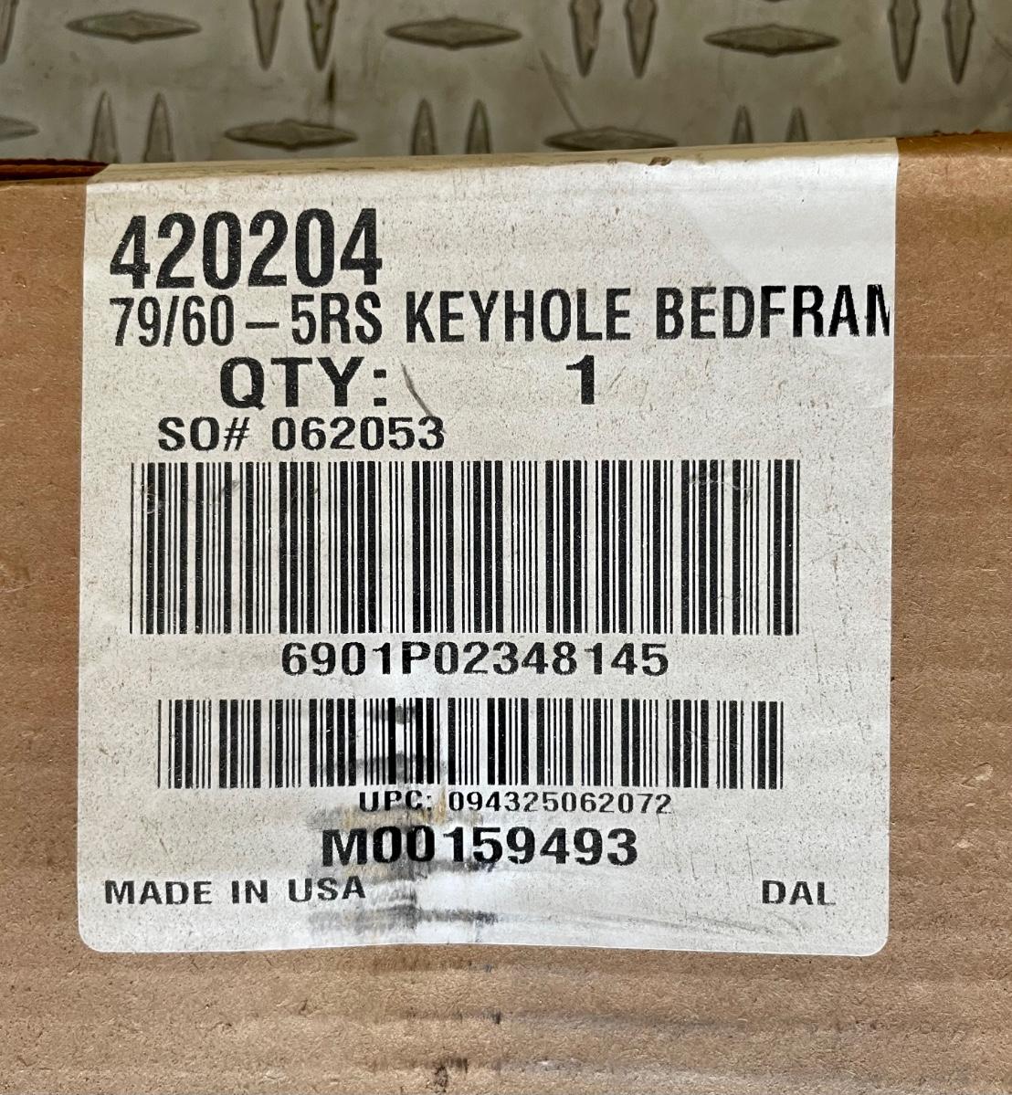 Queen Size Bed Frame, new in sealed box. 79/60-5R adjustable bed frame with headboard brackets and 5 wide-base feet. Opened one end to show actual frame parts. Photo shows assembled item.