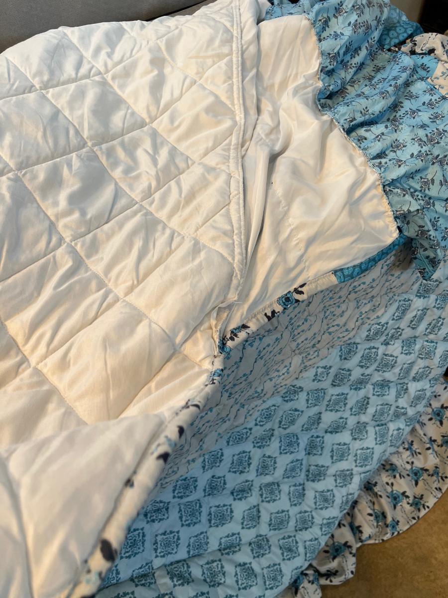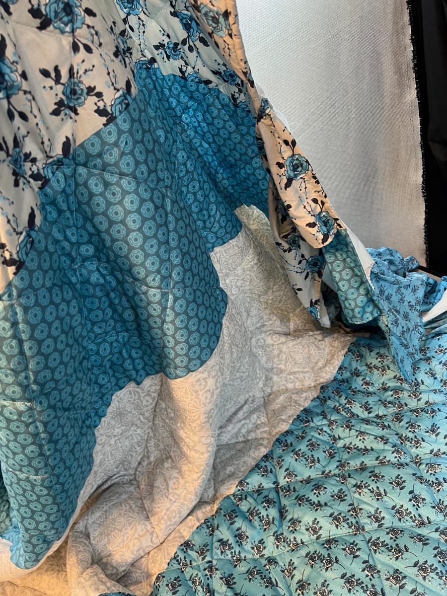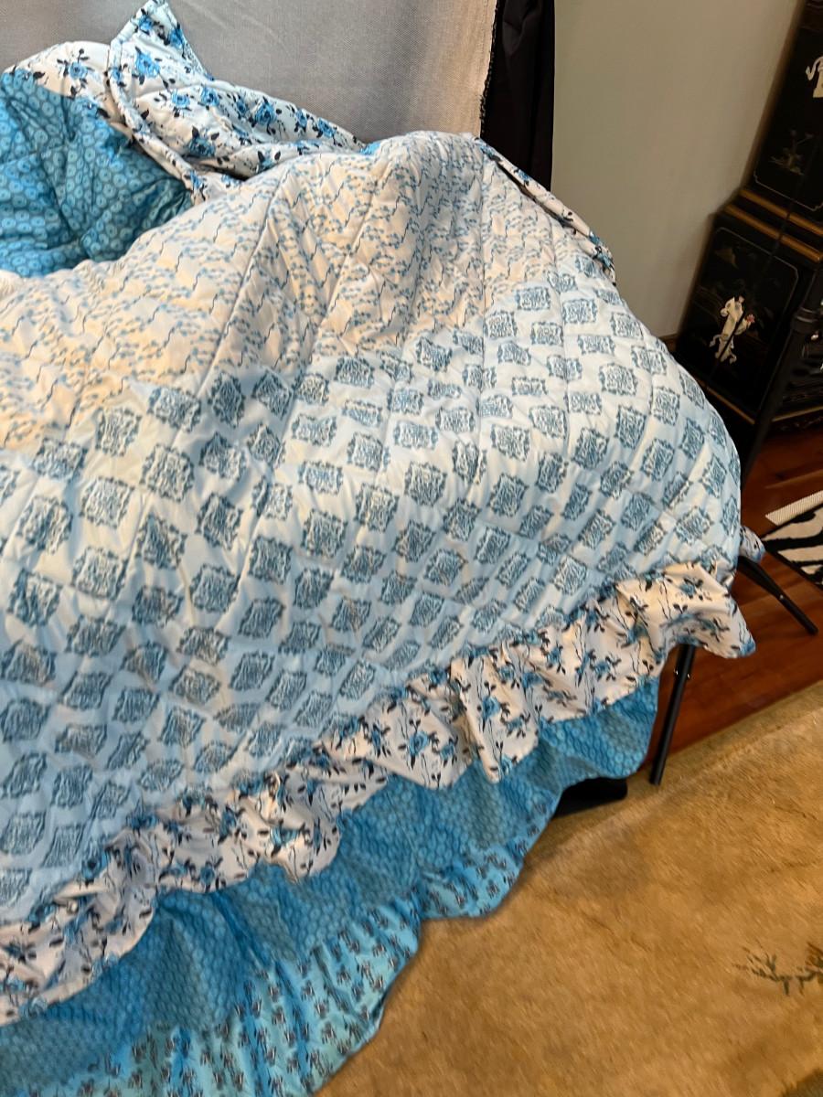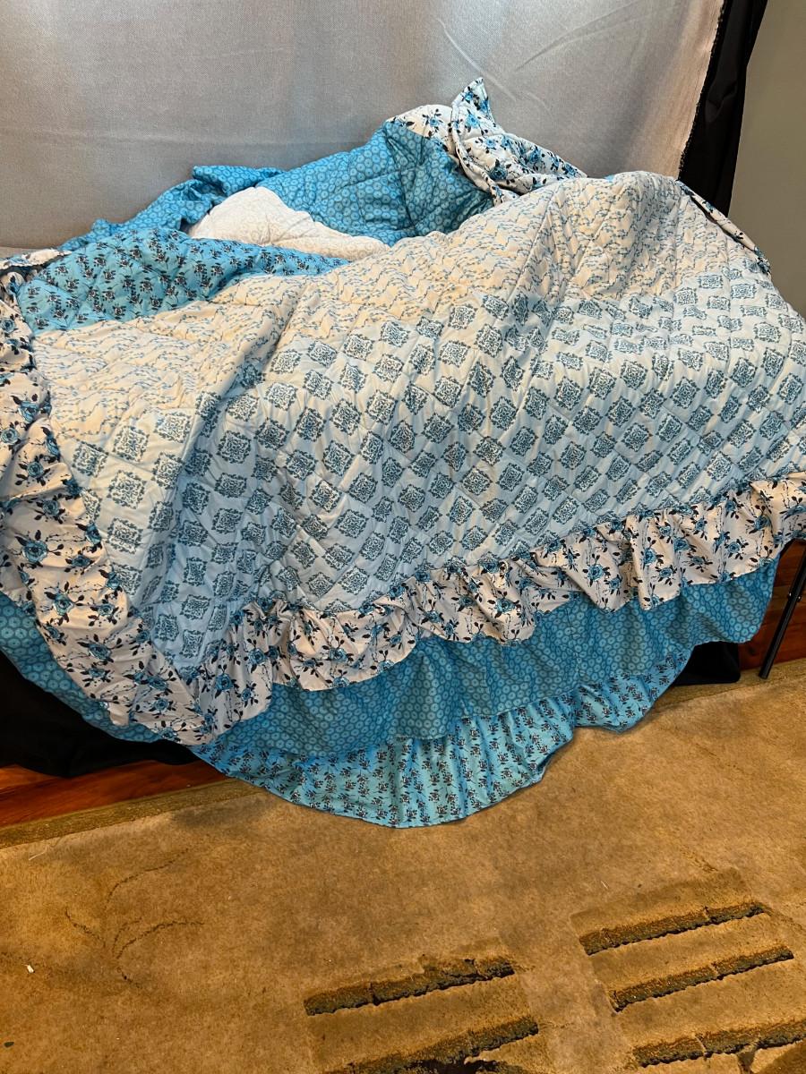 Queen Size Bed Ruffle Cover, Blue Turquoise Tones