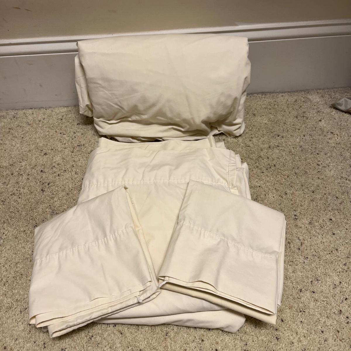Please note that the two regular bed pillows were discarded after photos were taken; their pillowcases are included but not the pillows themselves.
