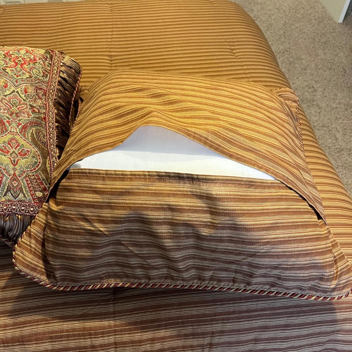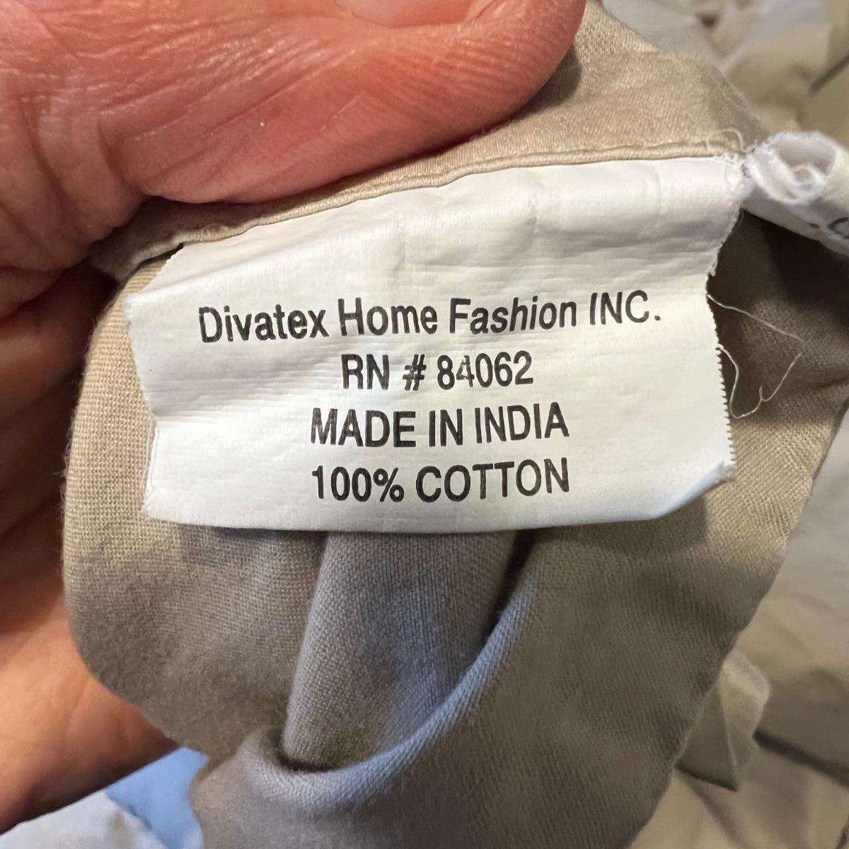 Comforter measures 90” x 96”. Please see photos for brand names.