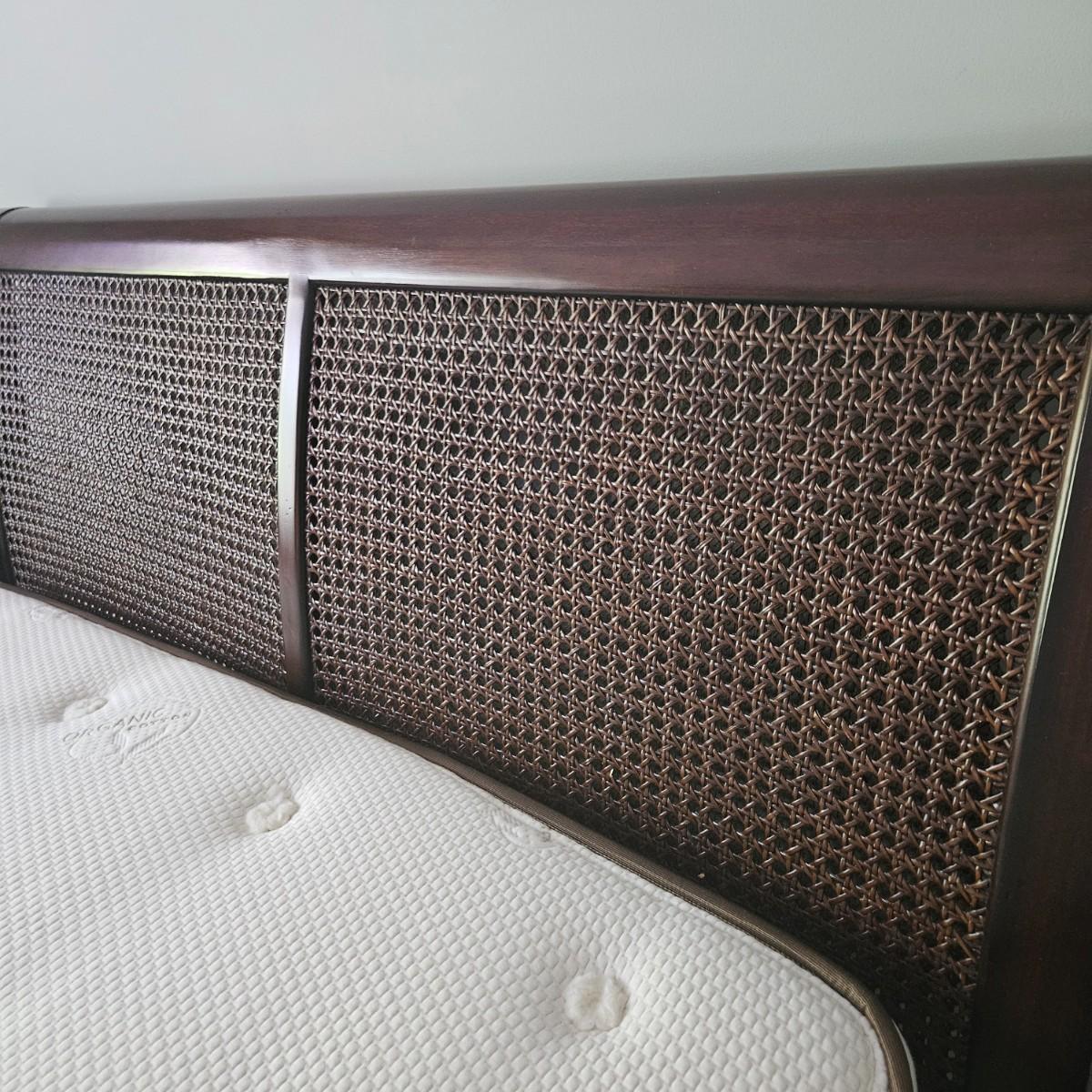 Queen Size Cane Sleigh Bed and Bedding (B1-DW)