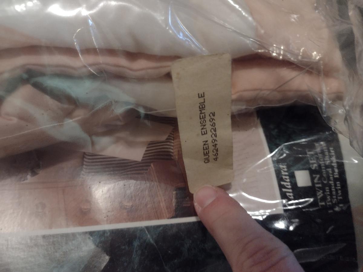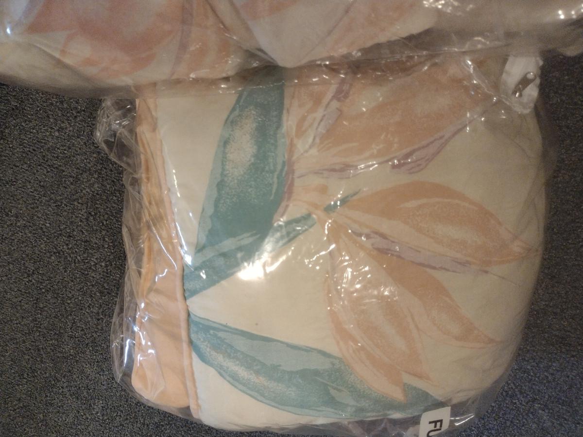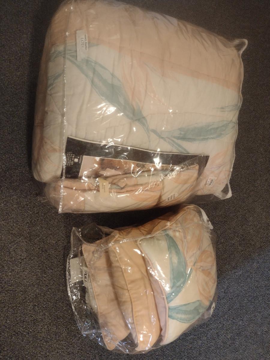 Queen Size Comforter with Throw Pillows. Item is vintage stock and may show signs of age.