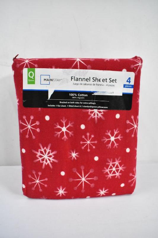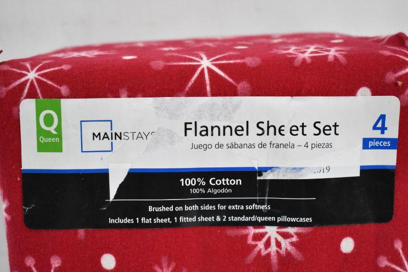 Queen Size Flannel Sheet Set by Mainstays, 4 Pieces, 100% Cotton - New