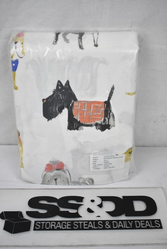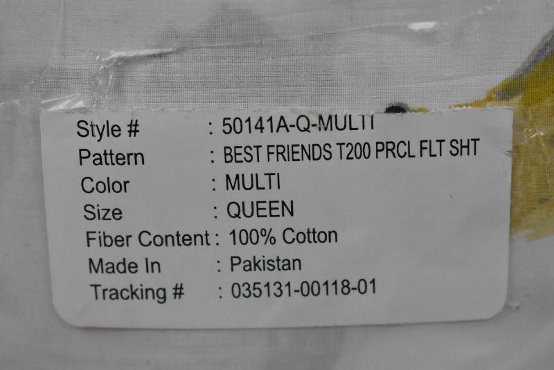 Queen Size Flat Sheet, Dogs "Best Friends" Design. Damaged Packaging - New