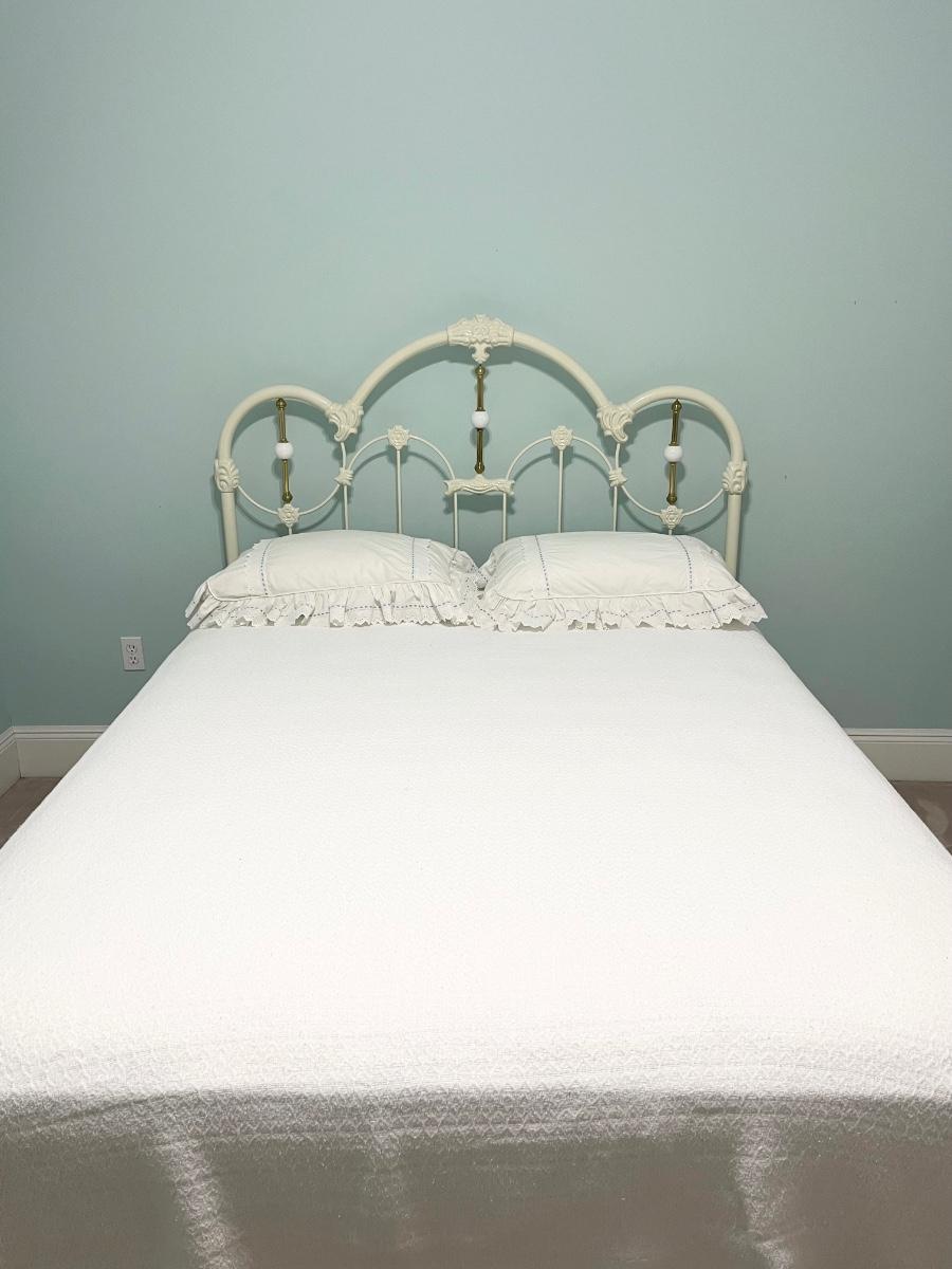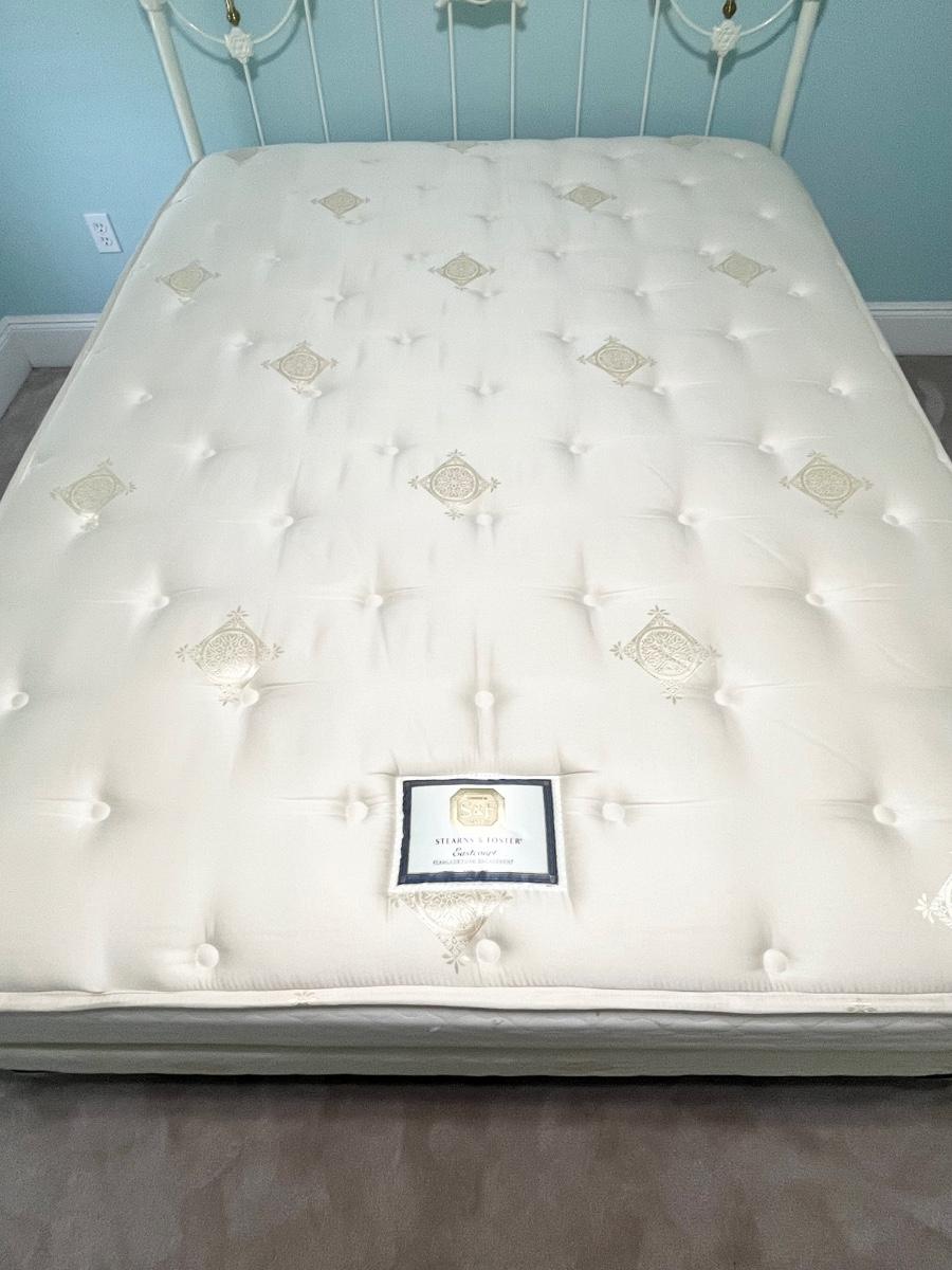 Queen Size White Metal & Brass Bed ~ Includes STEARNS & FOSTER Queen Mattress & Box Spring
