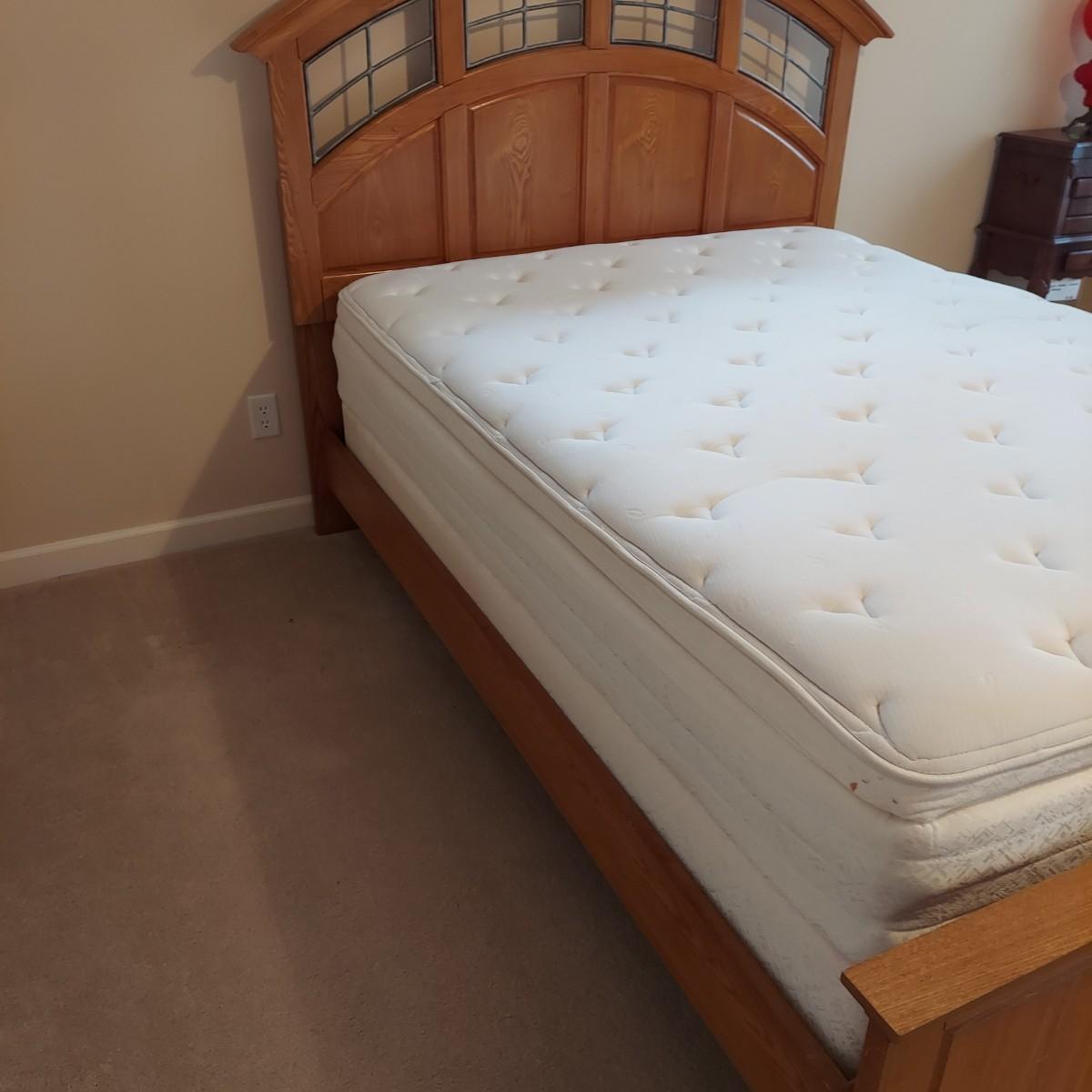 The mattress is available to the winning bidder if desired, but the winning bidder is not required to take it. There is a matching dresser for sale in another lot. The photos of receipts are shown for info. They are not included for buyer. This piece is located on the ground floor. It will need to be dismantled by the buyer and moved down the six front steps from the porch to the sidewalk. Local Pickup Only. Winning bidder must bring assistance to help move and load this item due to its weight and/or size.