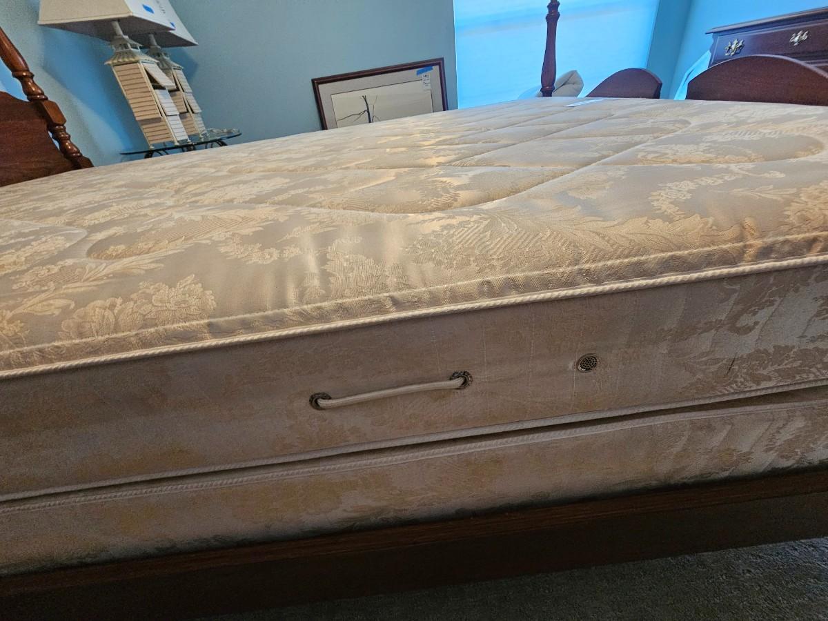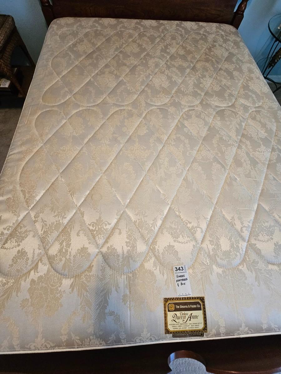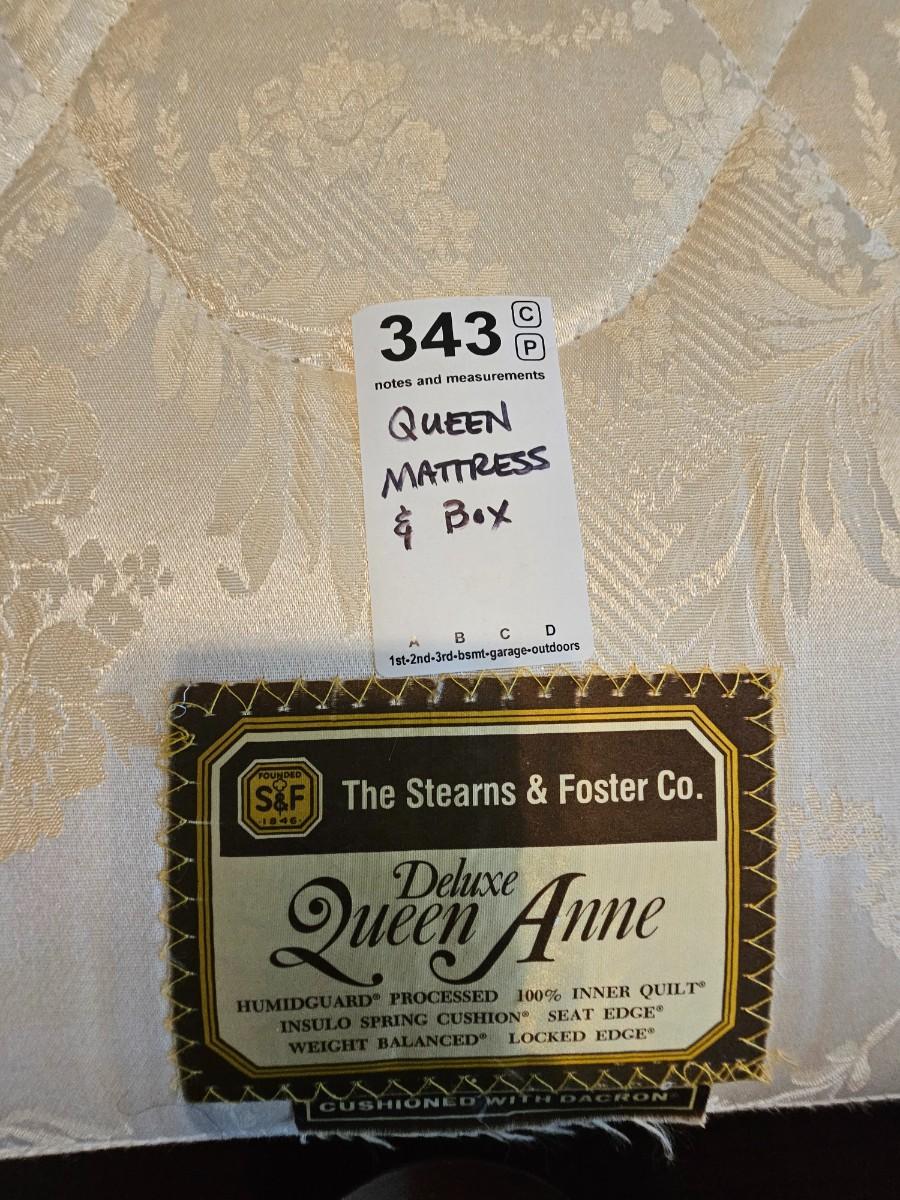 Sterns and Folster queen size mattress, no stains. Includes box springs (only) Bed frame not included