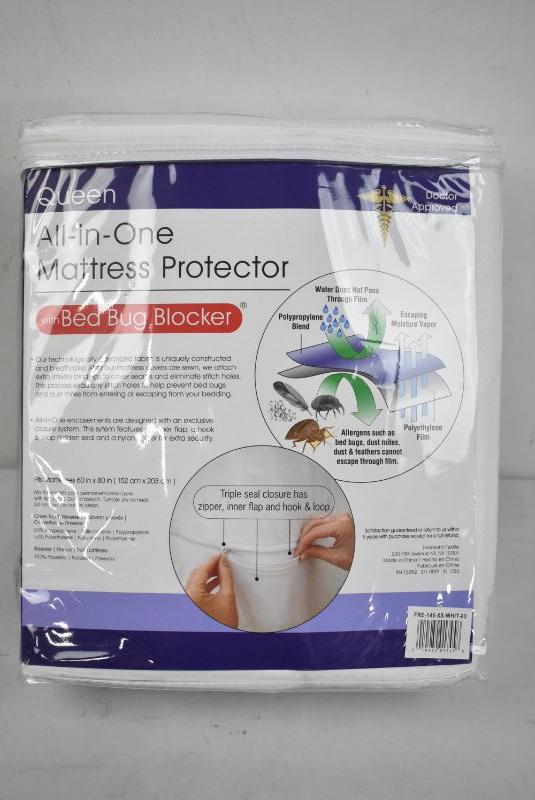 Queen Size Mattress Protector: Original Bed Bug Blocker Zippered, by All-In-One - New