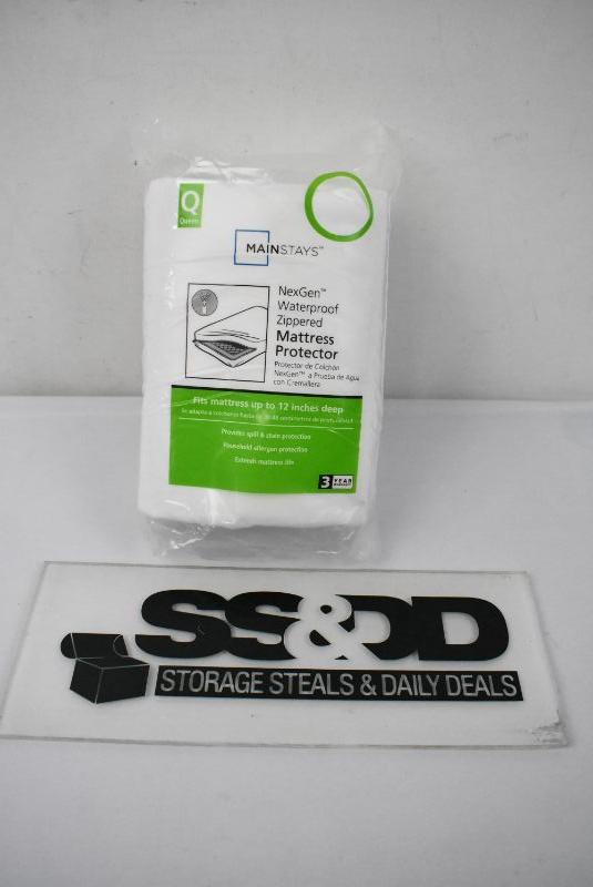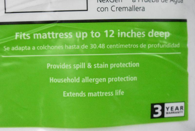 Queen Size Mattress Protector, Waterproof, Zippered, 12" Deep, White - New