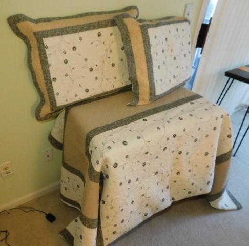 Queen Size Quilted Comforter with Two Matching Pillow Shams (& Pillows)