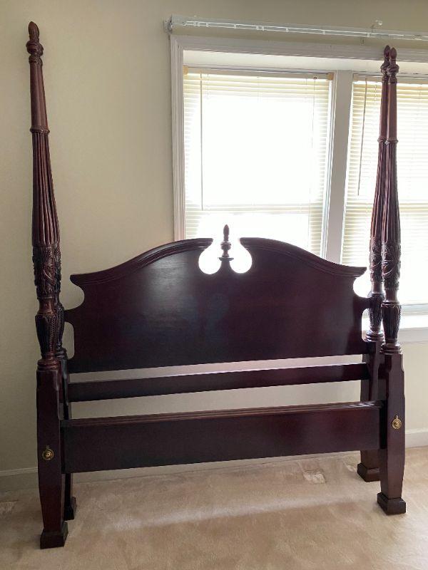 Queen Size Rice/Wheat Post Bed 86x66 mahogany excellent condition wood rails