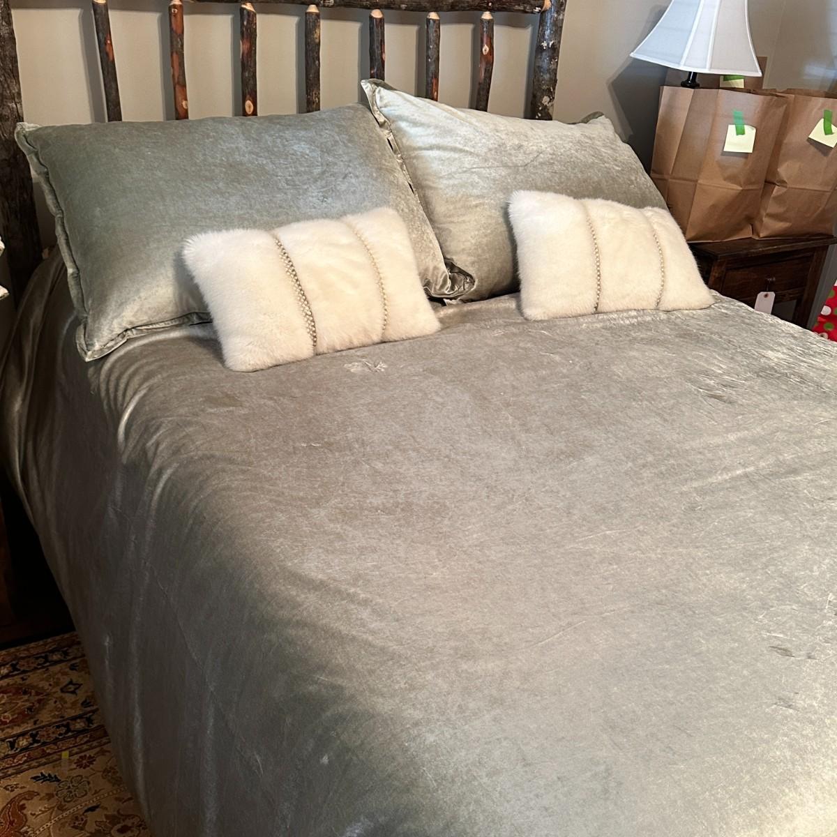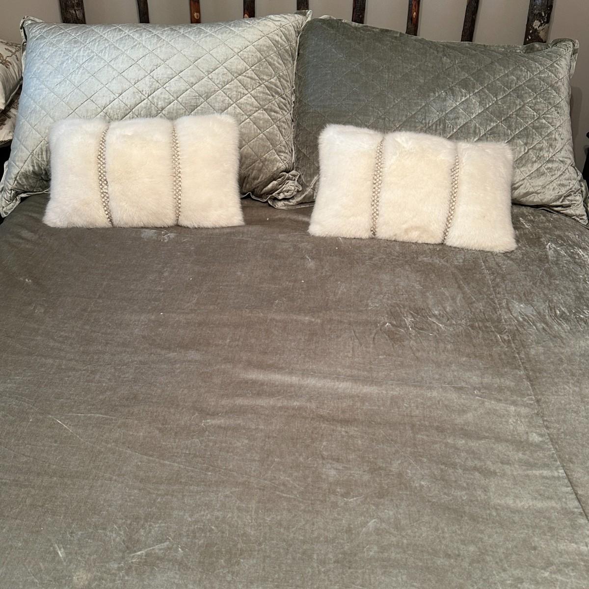 *Queen Size Sea Foam Velveteen Bedding with Bedspread, Cover by Lili Allessandra, Dust Ruffle and 4 Pillows