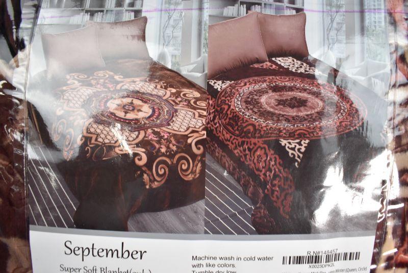 Queen Size "September" Floral Plush Fleece Blanket 76x88, $37 Retail - New