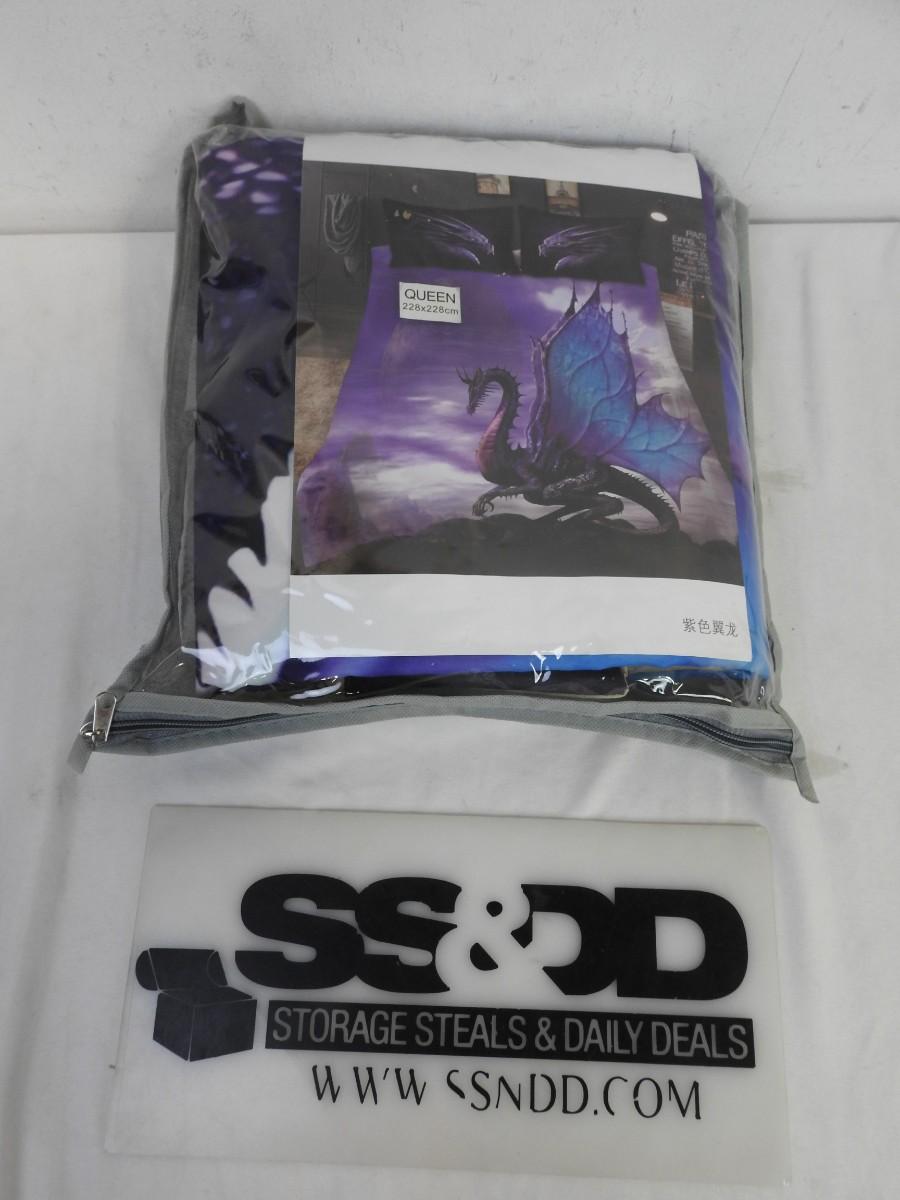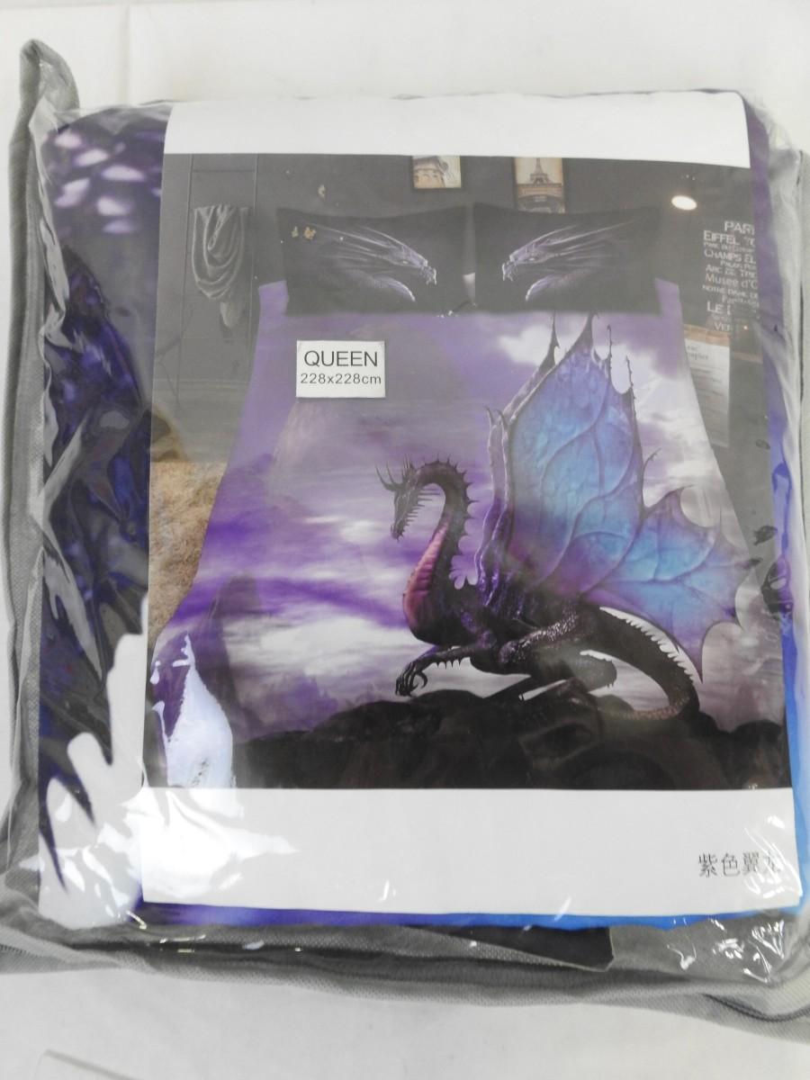 Queen Size Sheet, 2 Pillow Cases, Purple Dragon