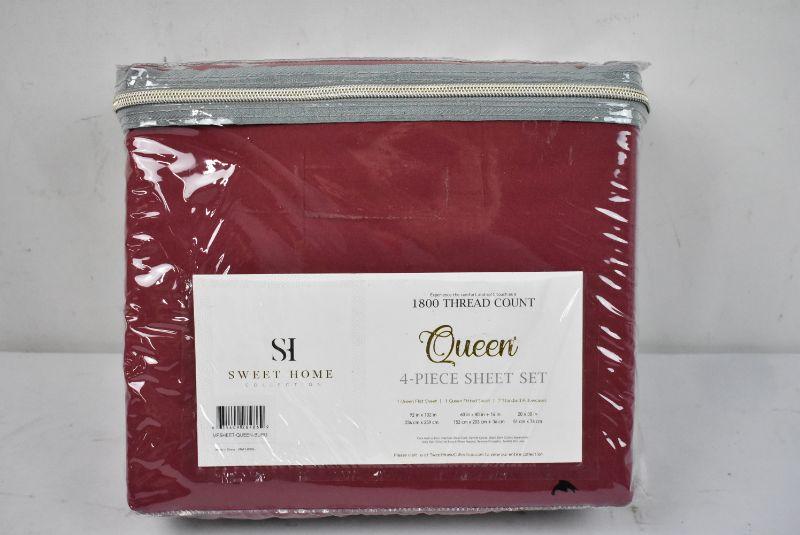 Queen Size Sheet Set, 1800 TC, Burgundy, by Sweet Home - New