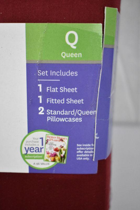 Queen Size Sheet Set by BH&G 300TC 100% Cotton, Rose Wine - New
