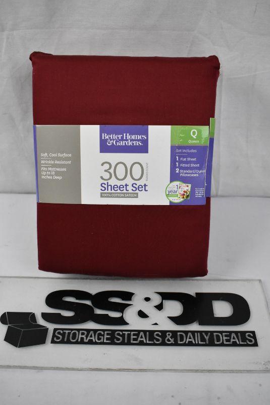 Queen Size Sheet Set by BH&G 300 Thread Count 100% Cotton Wrinkle Resistant, Rose Wine - New
