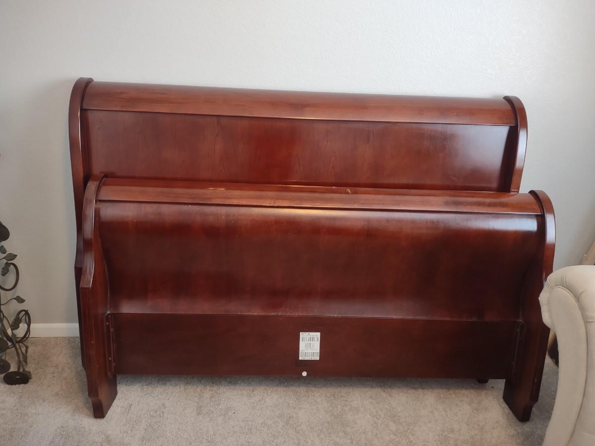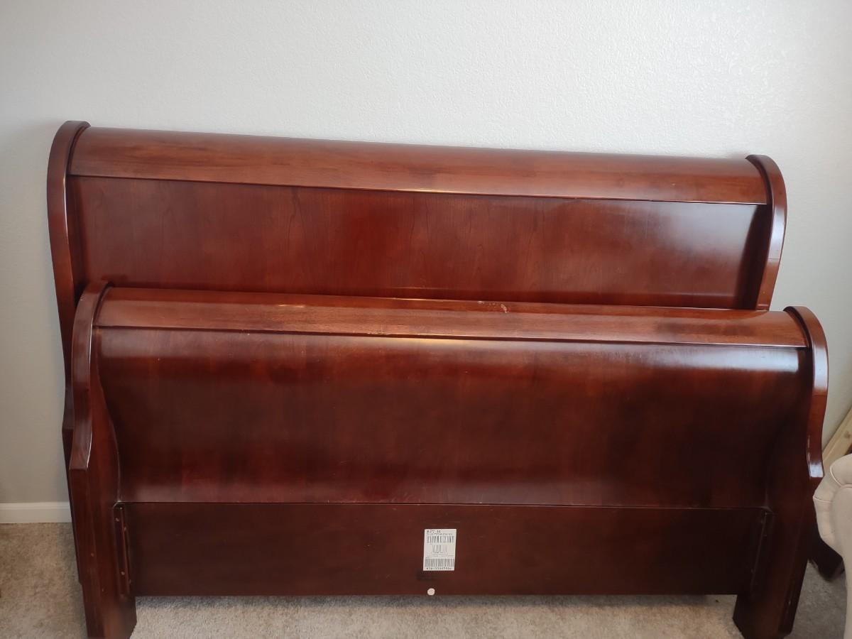 QUEEN SIZE SLEIGH BED FRAME WITH A CHERRY FINISH