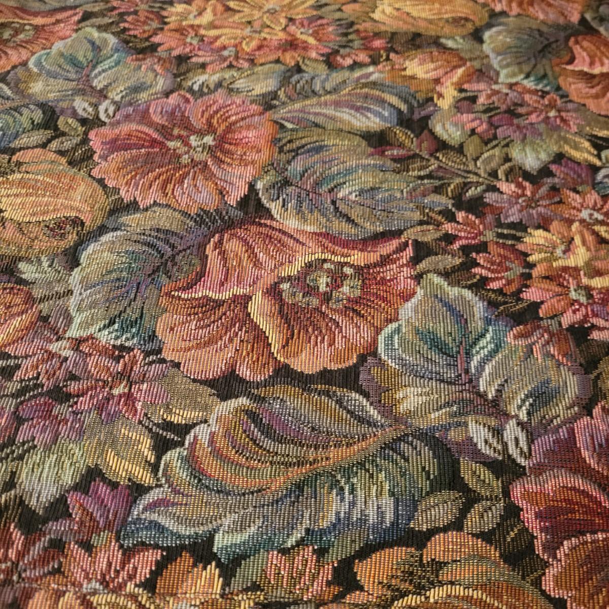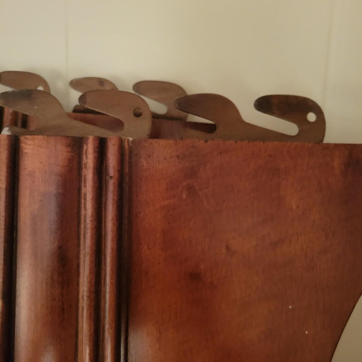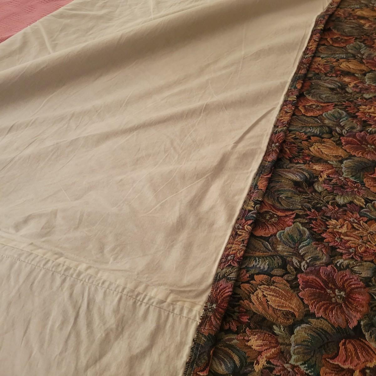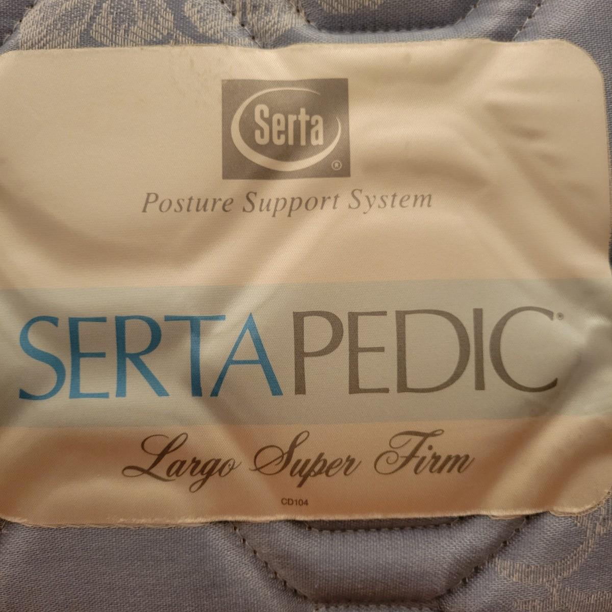 A queen size solid wood sleigh bed, comforter and accent pillow in good condition with no damage. This bedframe has a rich dark brown stain color with slot assembly for the rails and small carved details on the outside edge of the head and foot boards. Includes a floral comforter and accent pillow that is a tapestry type fabric. Winning bidder has the option of taking the SertaPedic mattress and boxspring if desired. The are in good condition. Bed Frame measures approximately 87" x 64" x 37". Winning bidder should bring assistance to move this piece up a flight of stairs. Local pickup only.