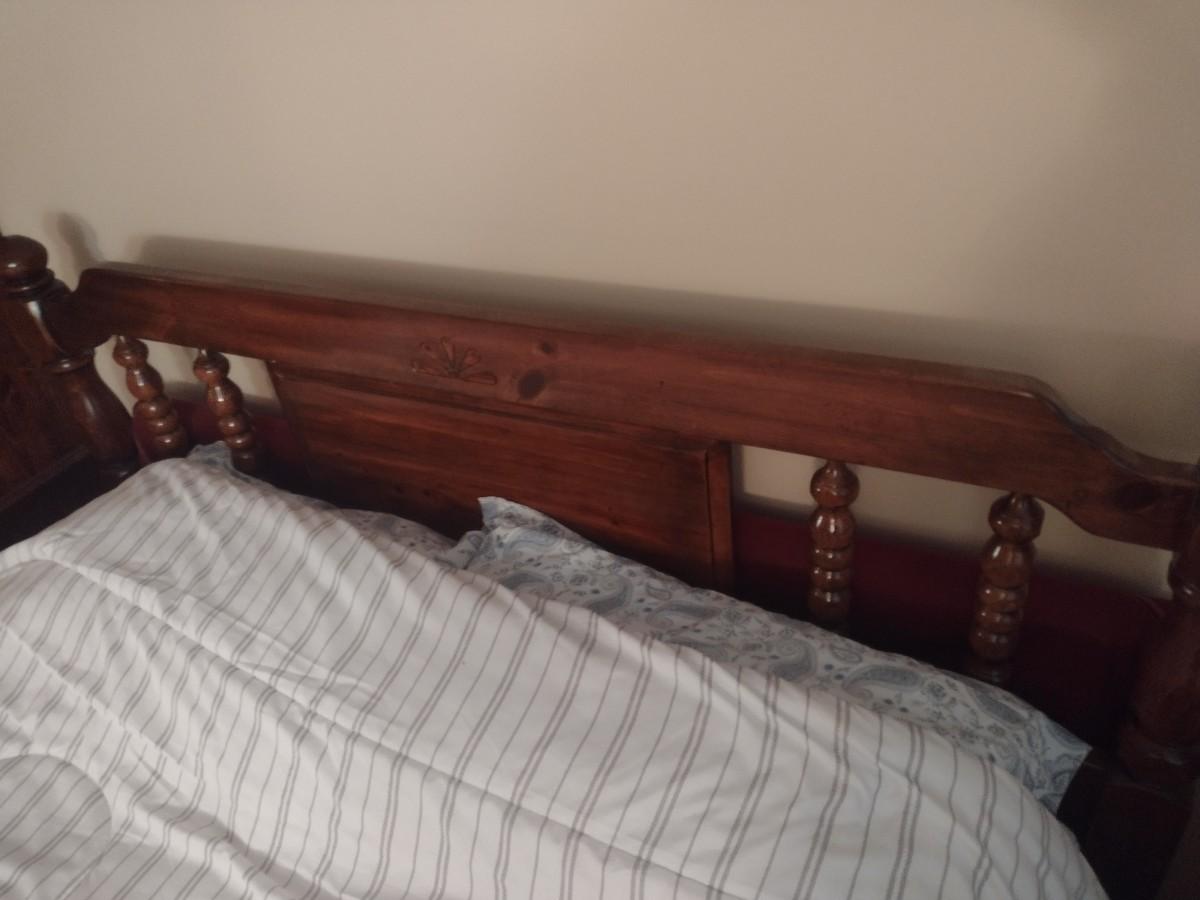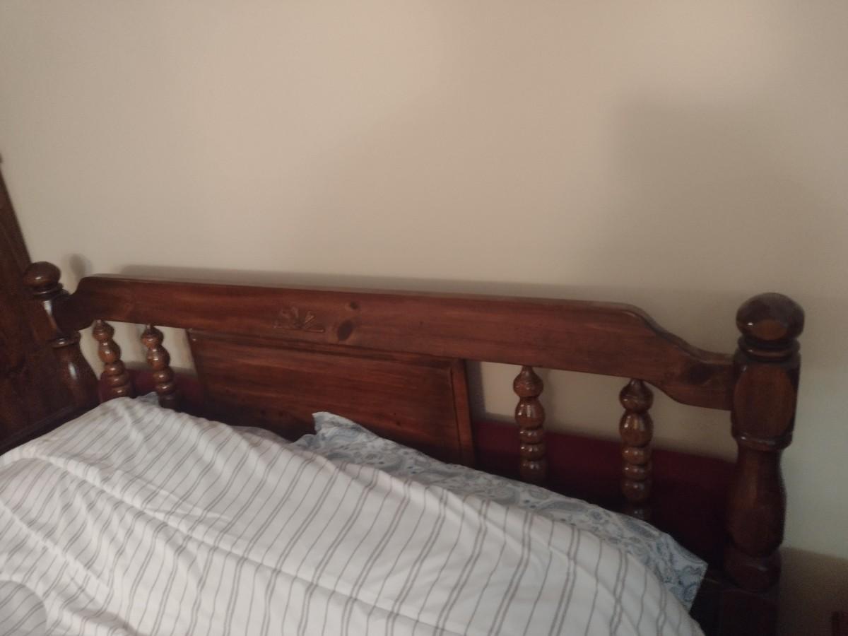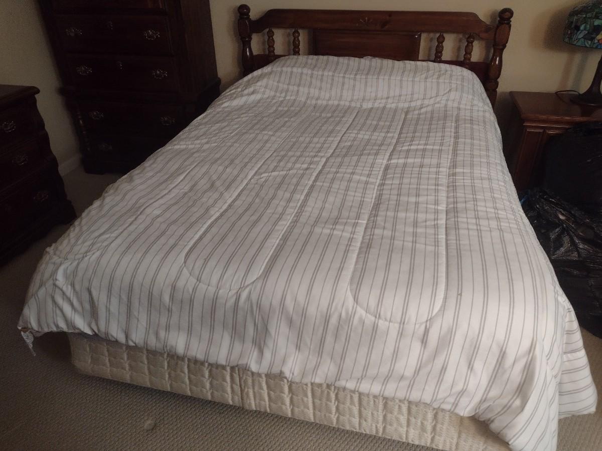 Queen Size Solid Wood Walnut Finish Bed Frame and Mattress Set
