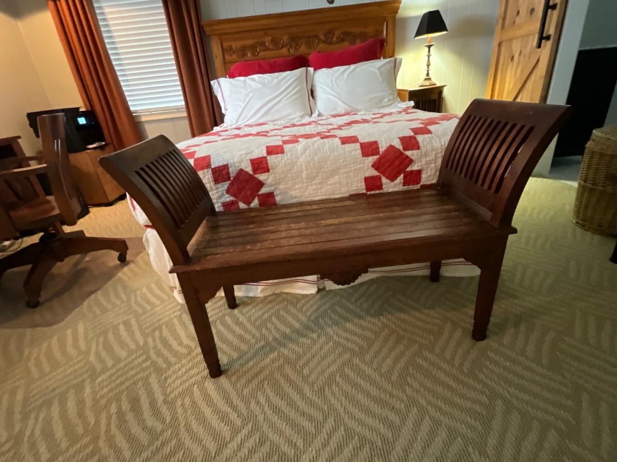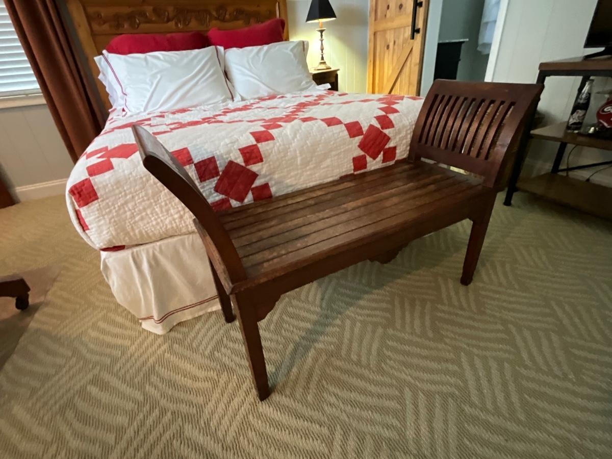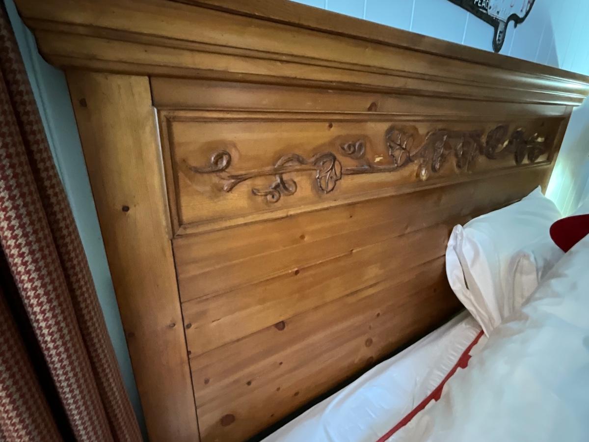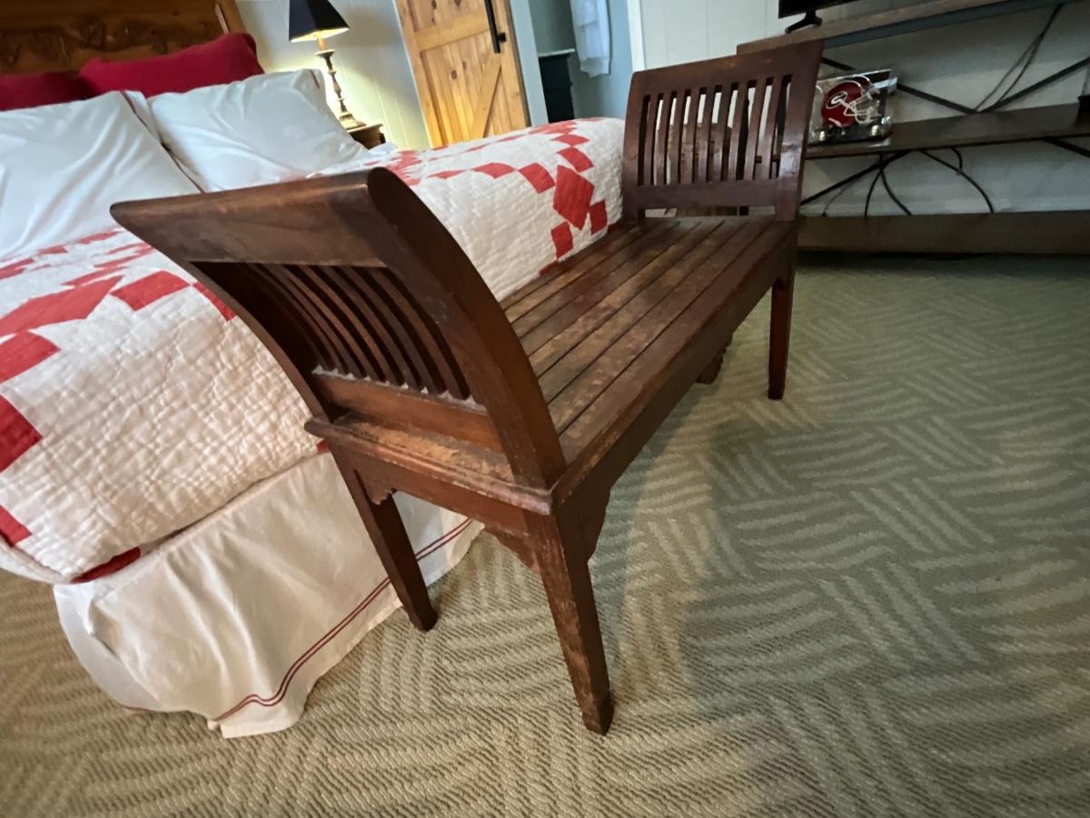 Queen Size Wood Headboard Frame, Mattress, Bedding And Bench