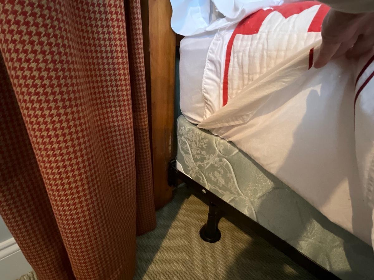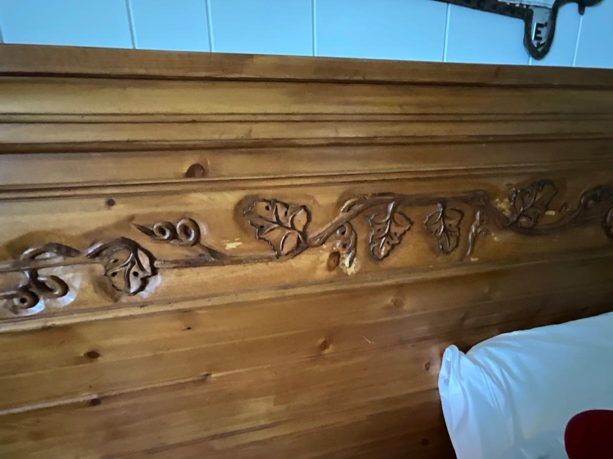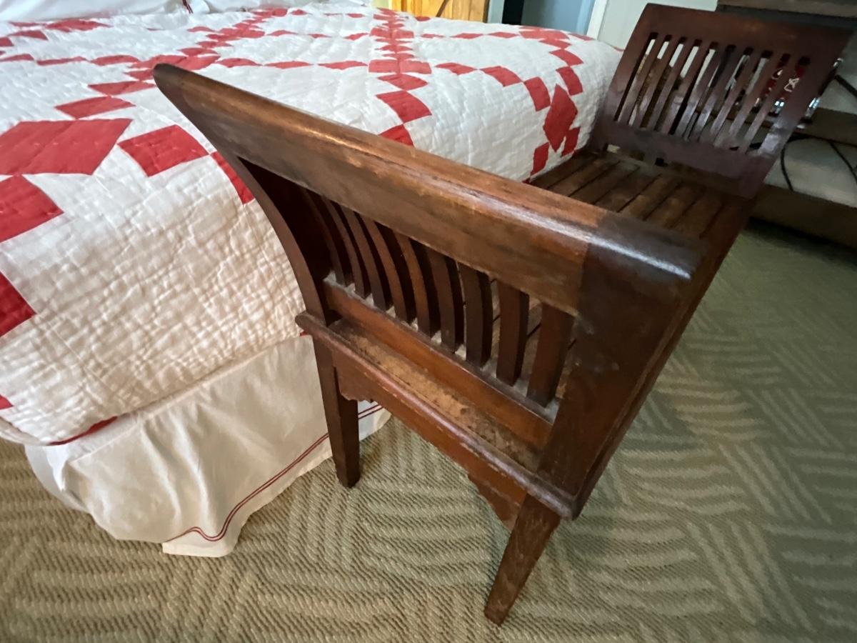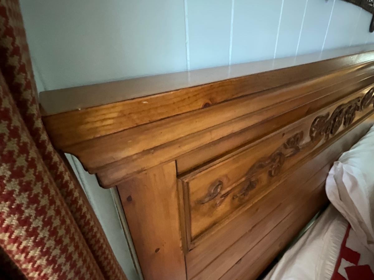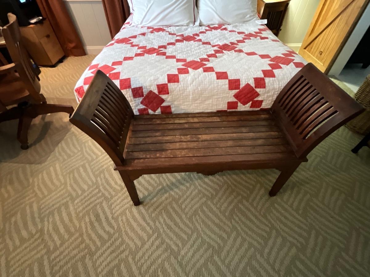 Queen Size Wood Headboard Frame, Mattress, Bedding And Bench