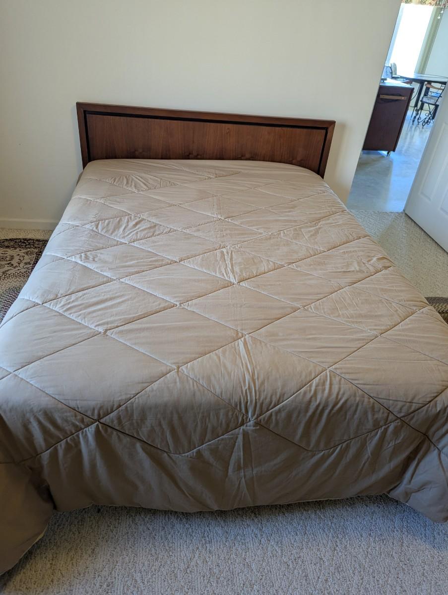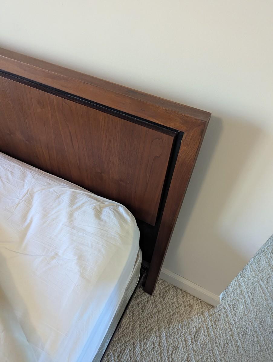 Queen Size Wooden Headboard With Metal Rails Includes Mattress & Box Spring