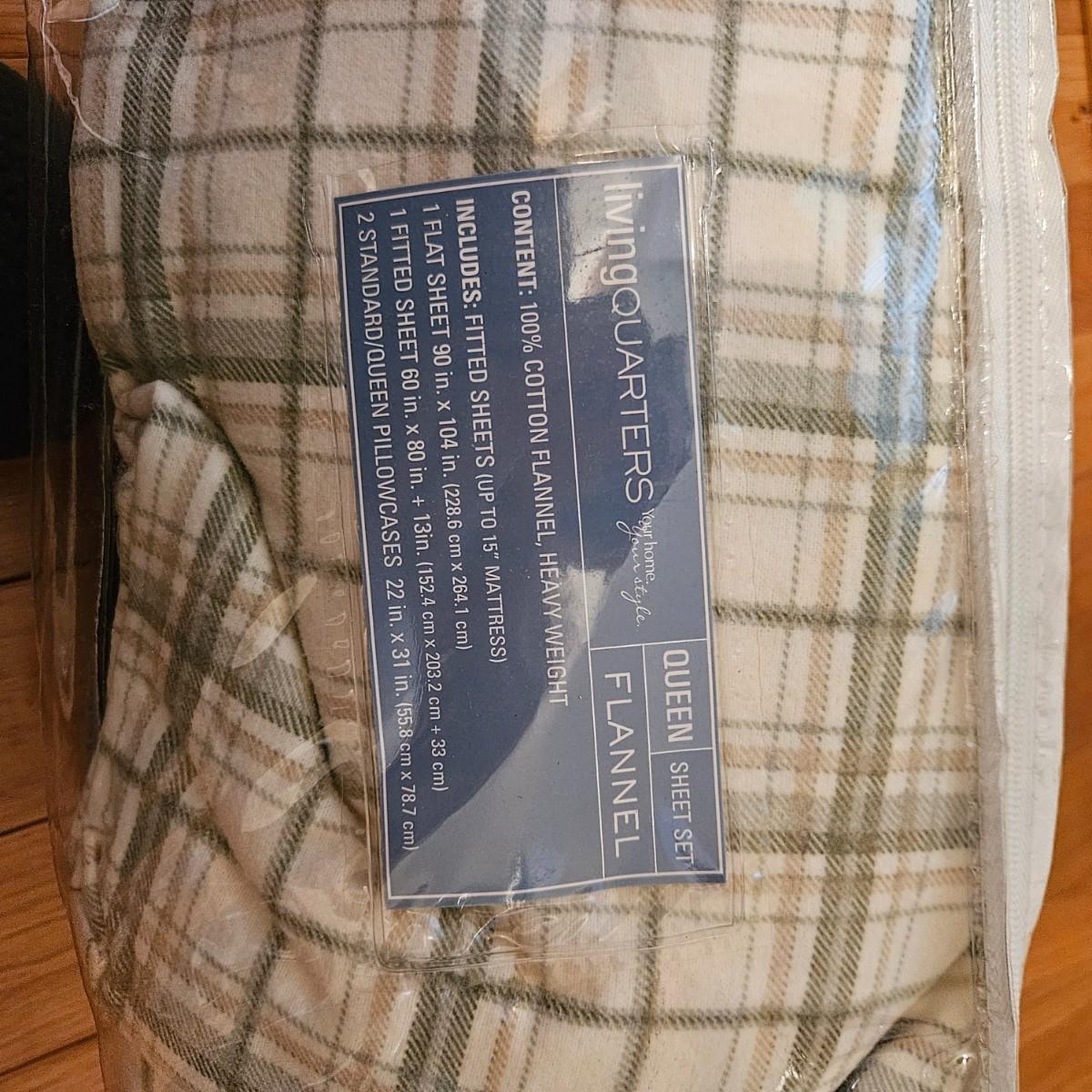 An assortment of queen sized bedding that is in its original packaging and appears to have never been used. Includes a four piece cotton flannel sheet set, a five piece luxury bedding set and a three piece quilt set. Local pickup only.