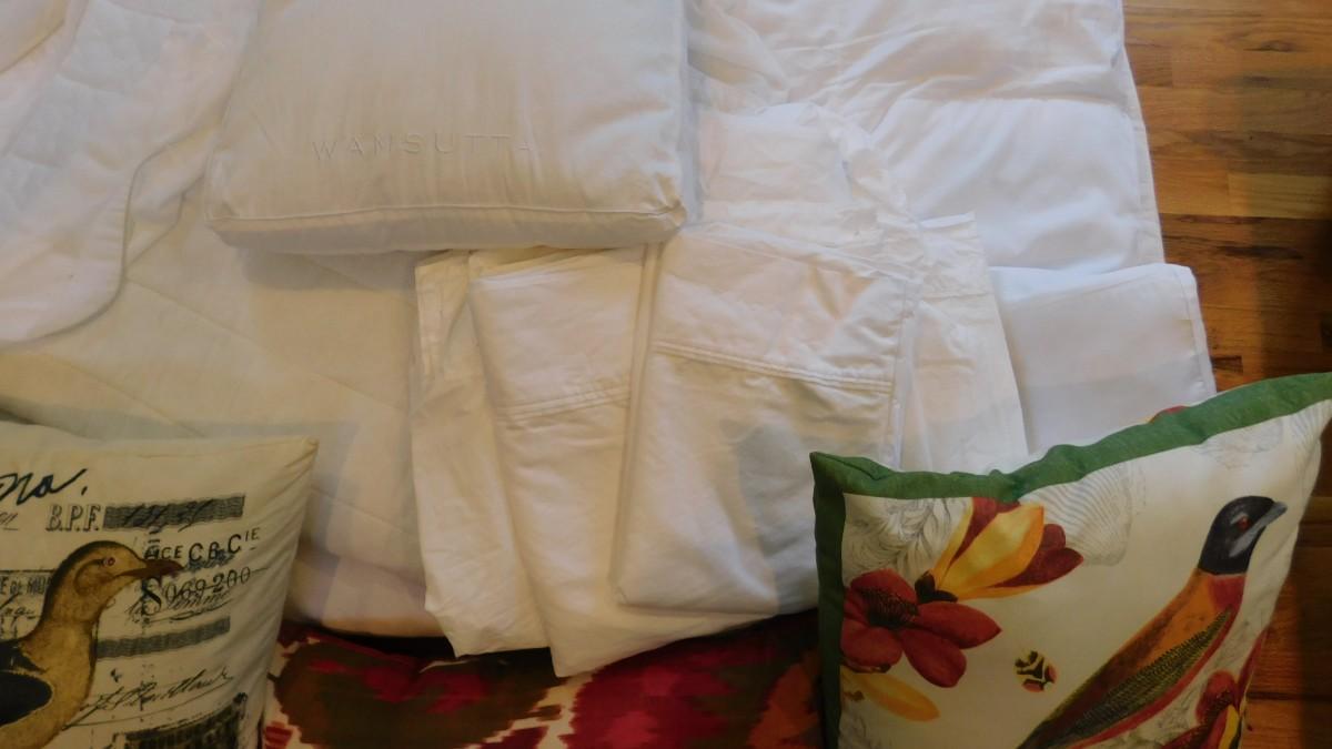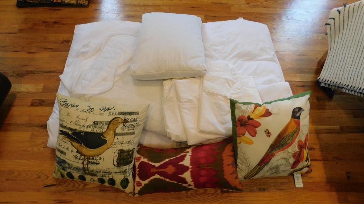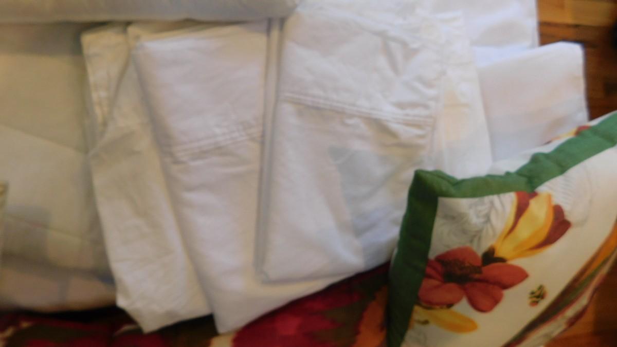 QUEEN SIZED DOWN FILLED MATTRESS TOPPER, MATTRESS PAD, SHEETS AND MORE