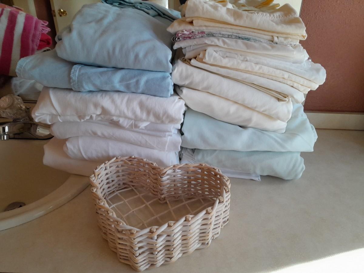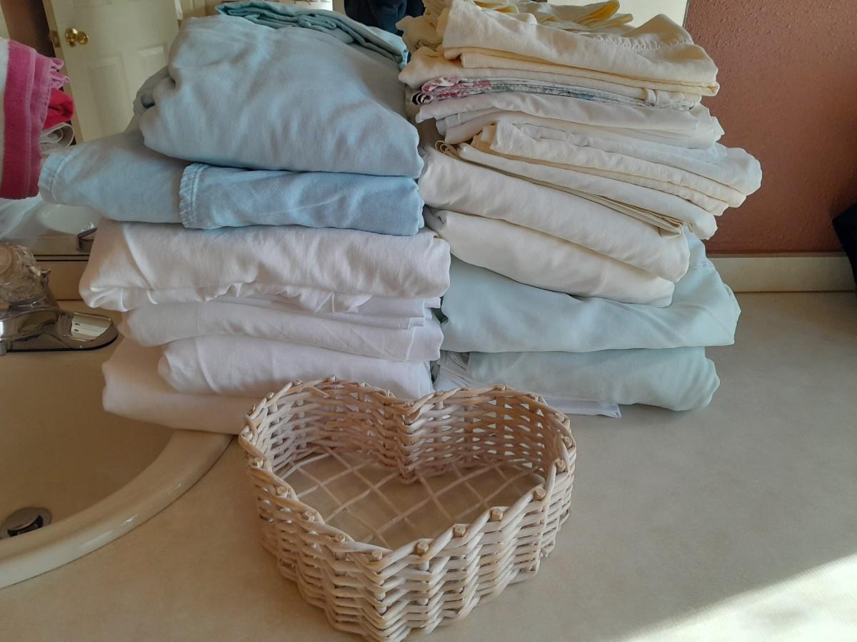 QUEEN SIZED SHEETS AND HEART SHAPED BASKET (not complete sets)