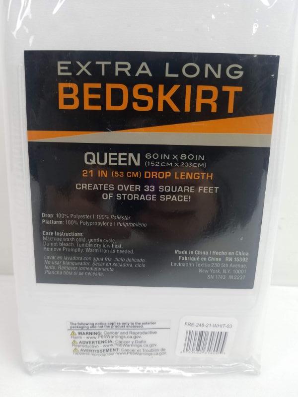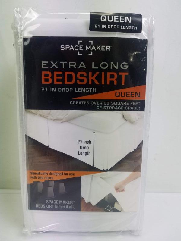 Queen Spacemaker Extra Long Bed Skirt 21" Drop Length, White - New