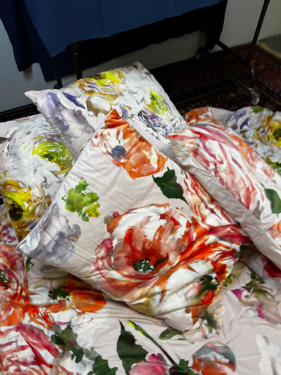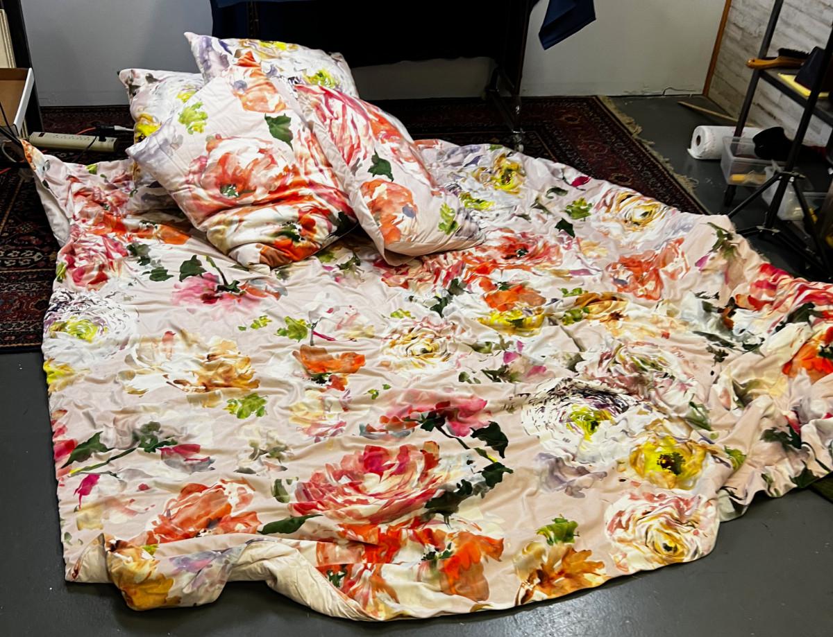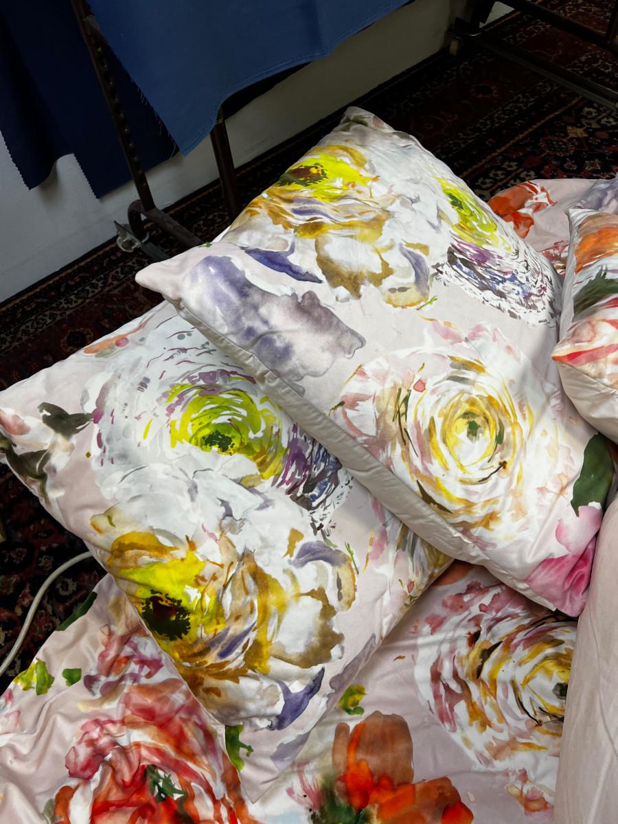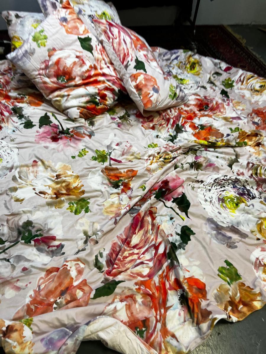 QUEEN Spread Plus 4 Pillows Pink with Orange Flowers NICE