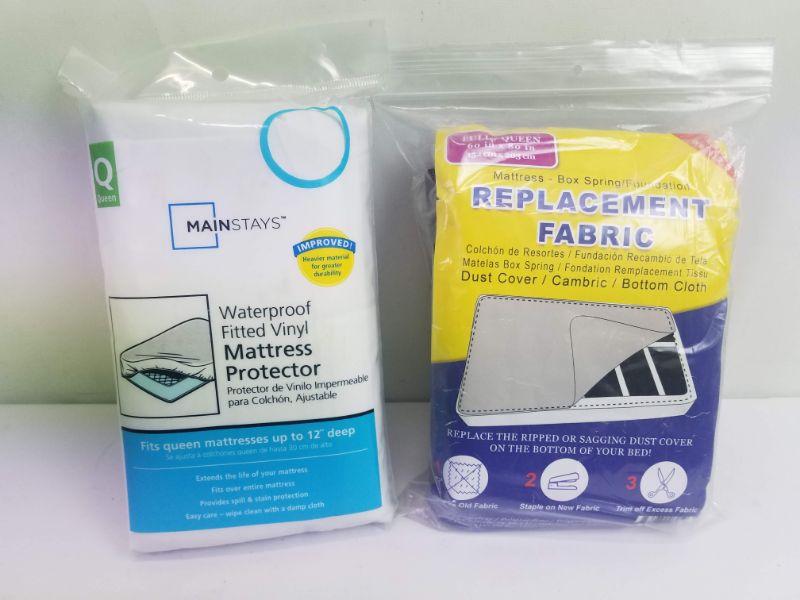 Queen Waterproof Fitted Vinyl Mattress Protector & Box Spring Replacement Fabric - New