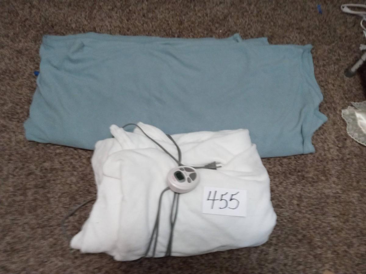QUEEN WHITE HEATED BLANKET AND A TEAL BLANKET