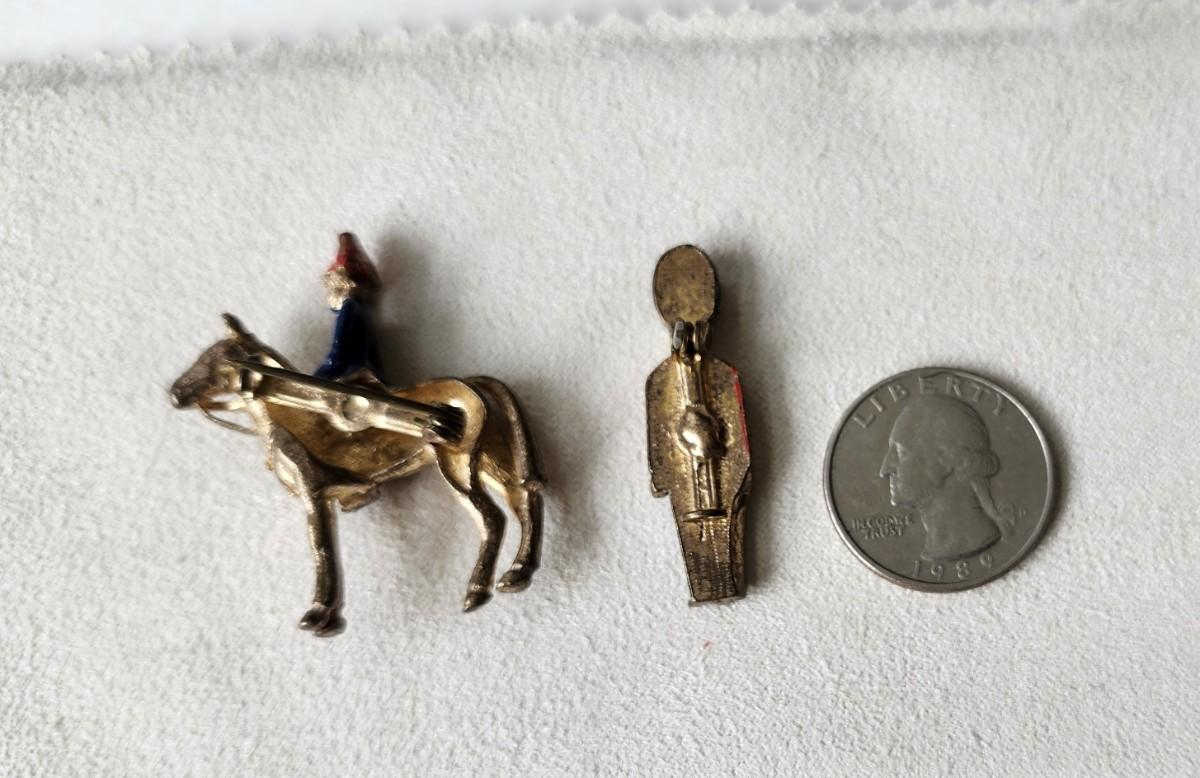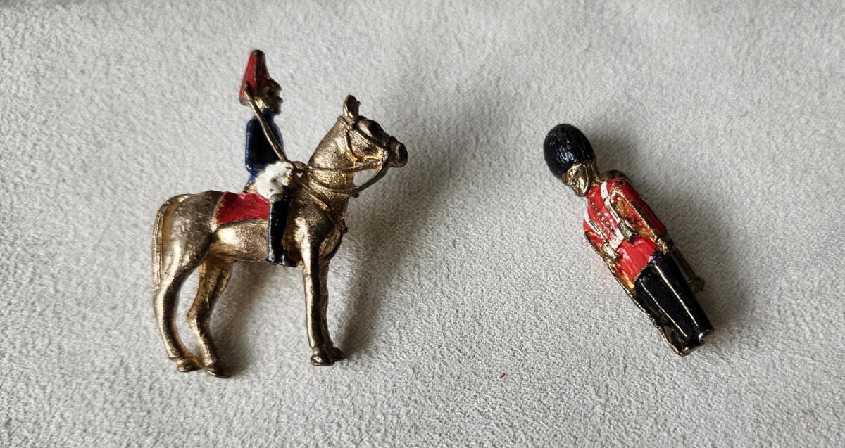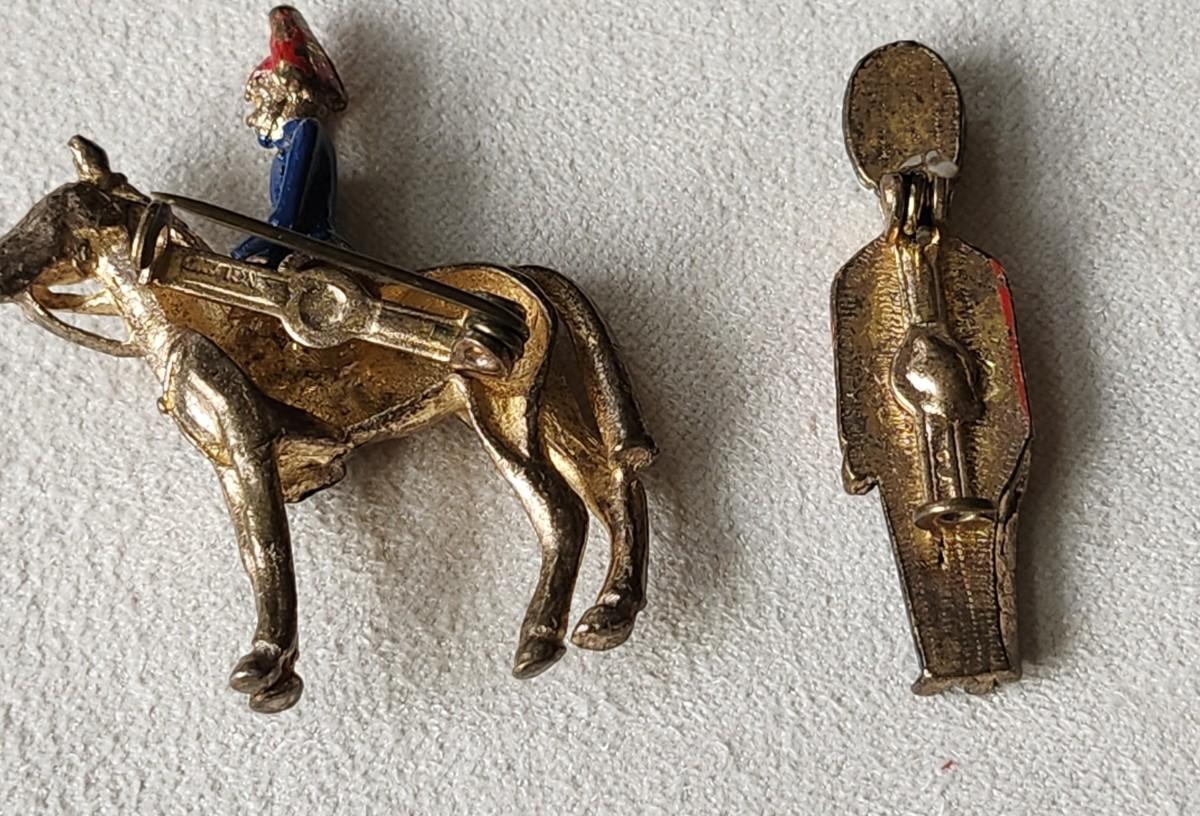 Buckingham Palace mounted Queen's Guard and standing Queen's Guard pins.