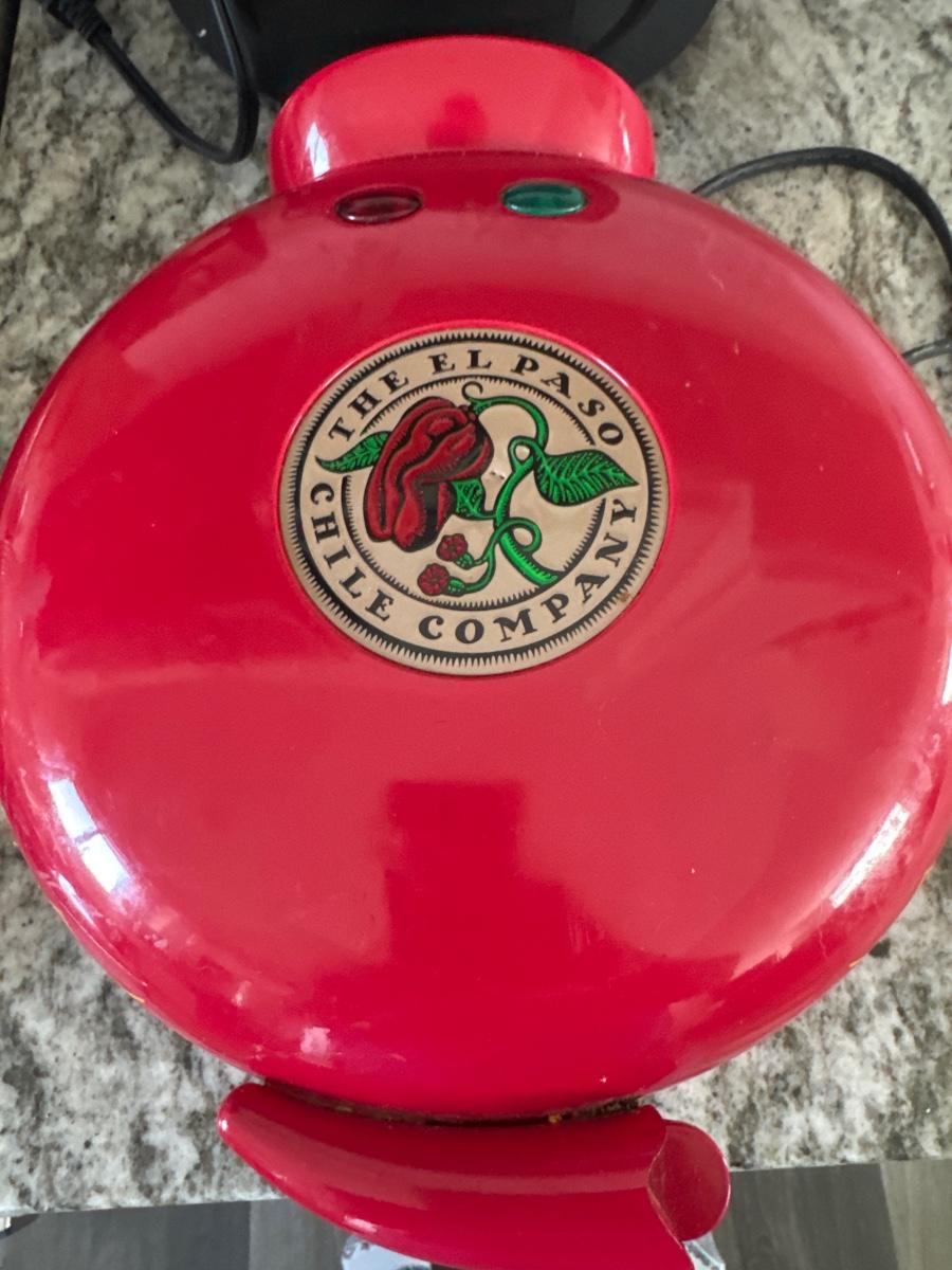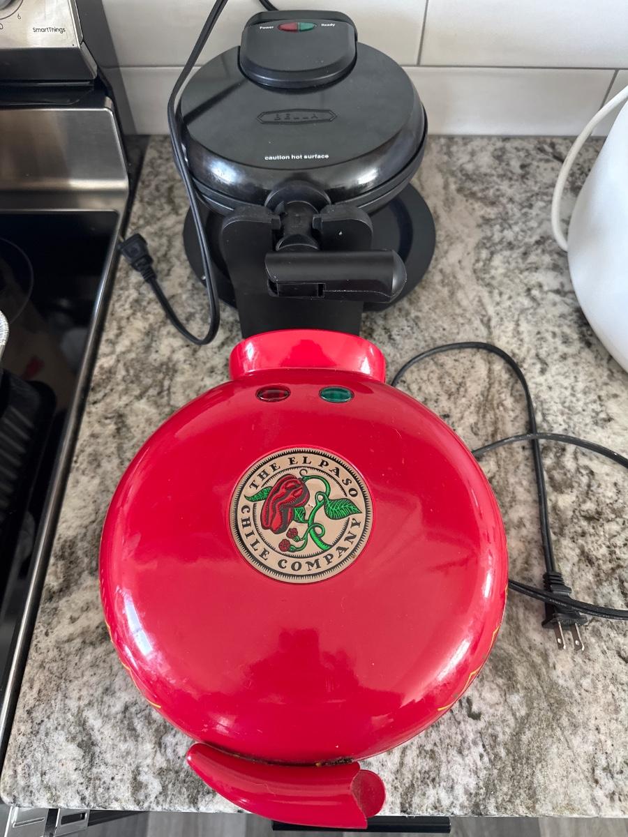 The quesadilla maker is “The El Paso Chile Company and the waffle maker is made by Bella. Plugged in and both heated up.