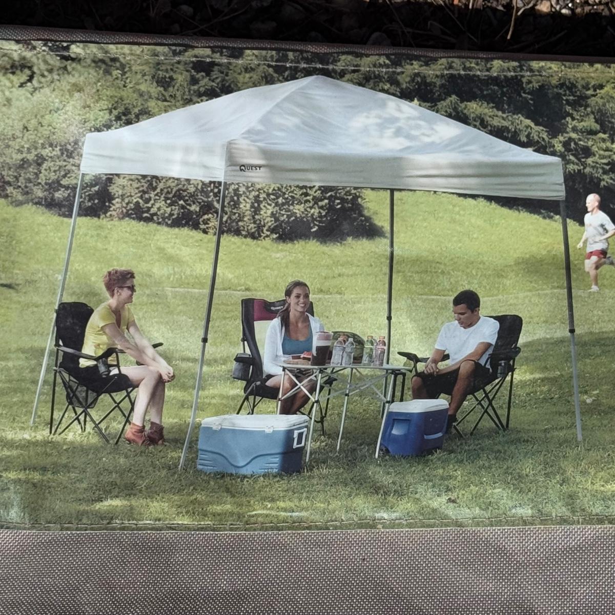 Lot includes one Quest 10x10 Instant Up Canopy. The canopy is brand new and has never been assembled. The canopy covers 64 square feet in shade. Local pickup only.