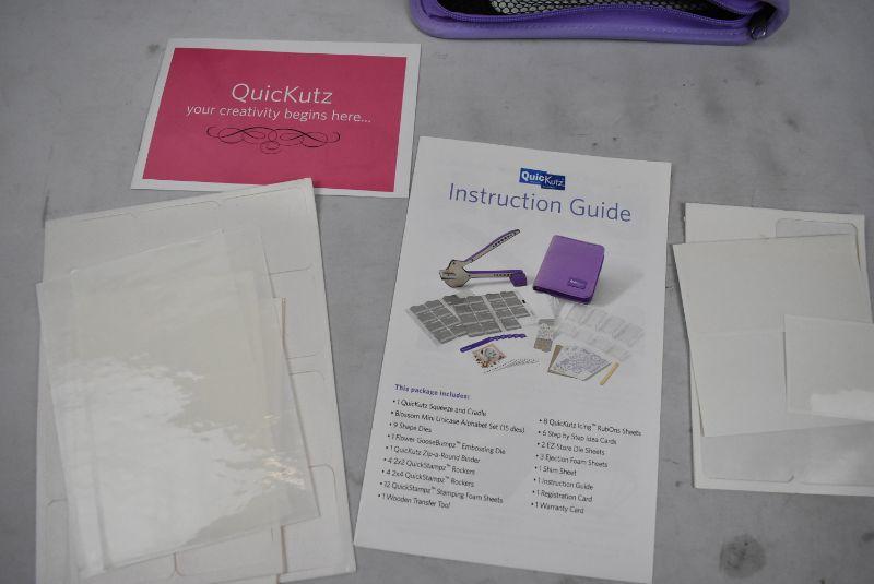 QuicKutz Squeeze Handle, Bag, Alphabet, Binder, Rub-Ons. Purple & Black