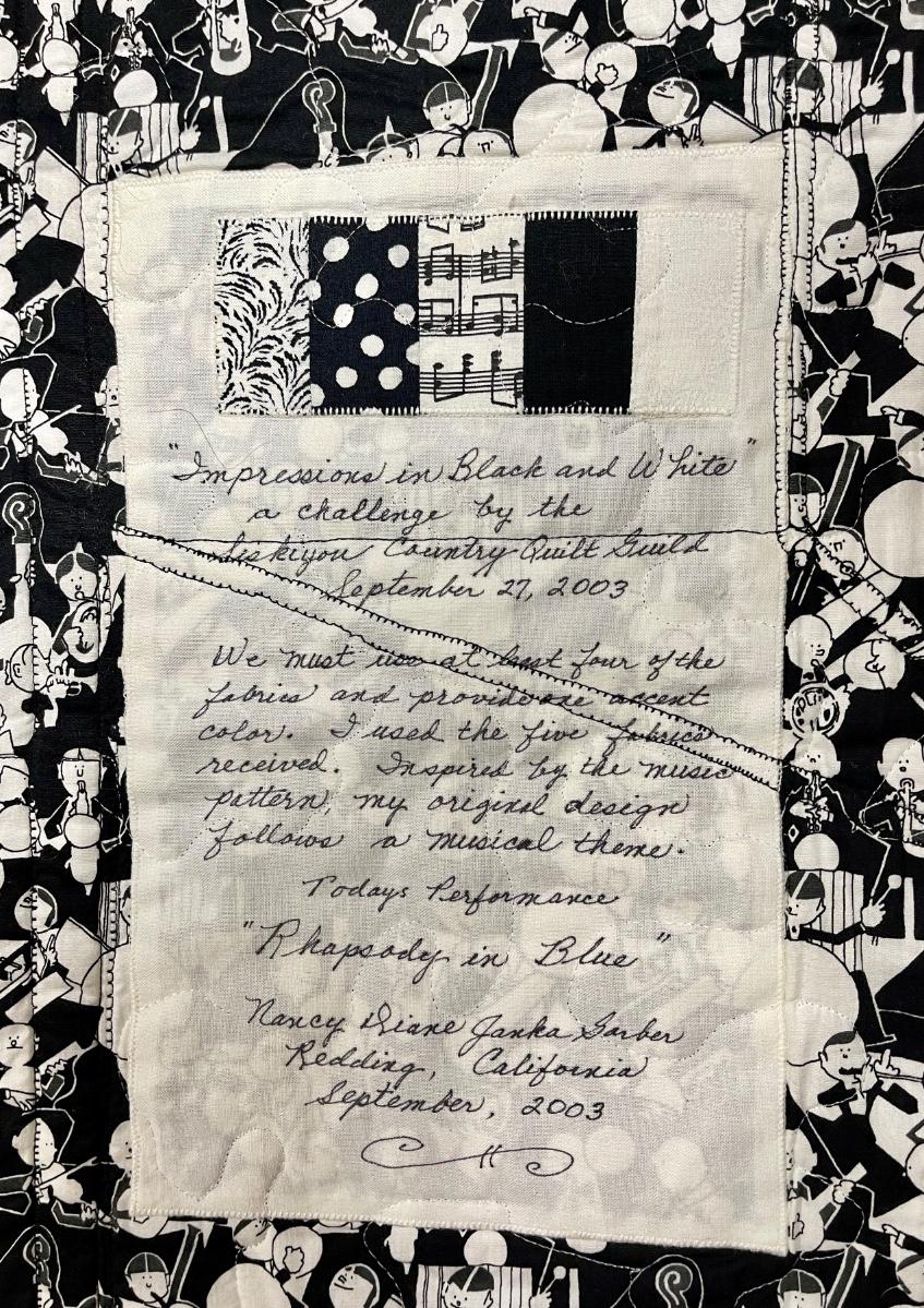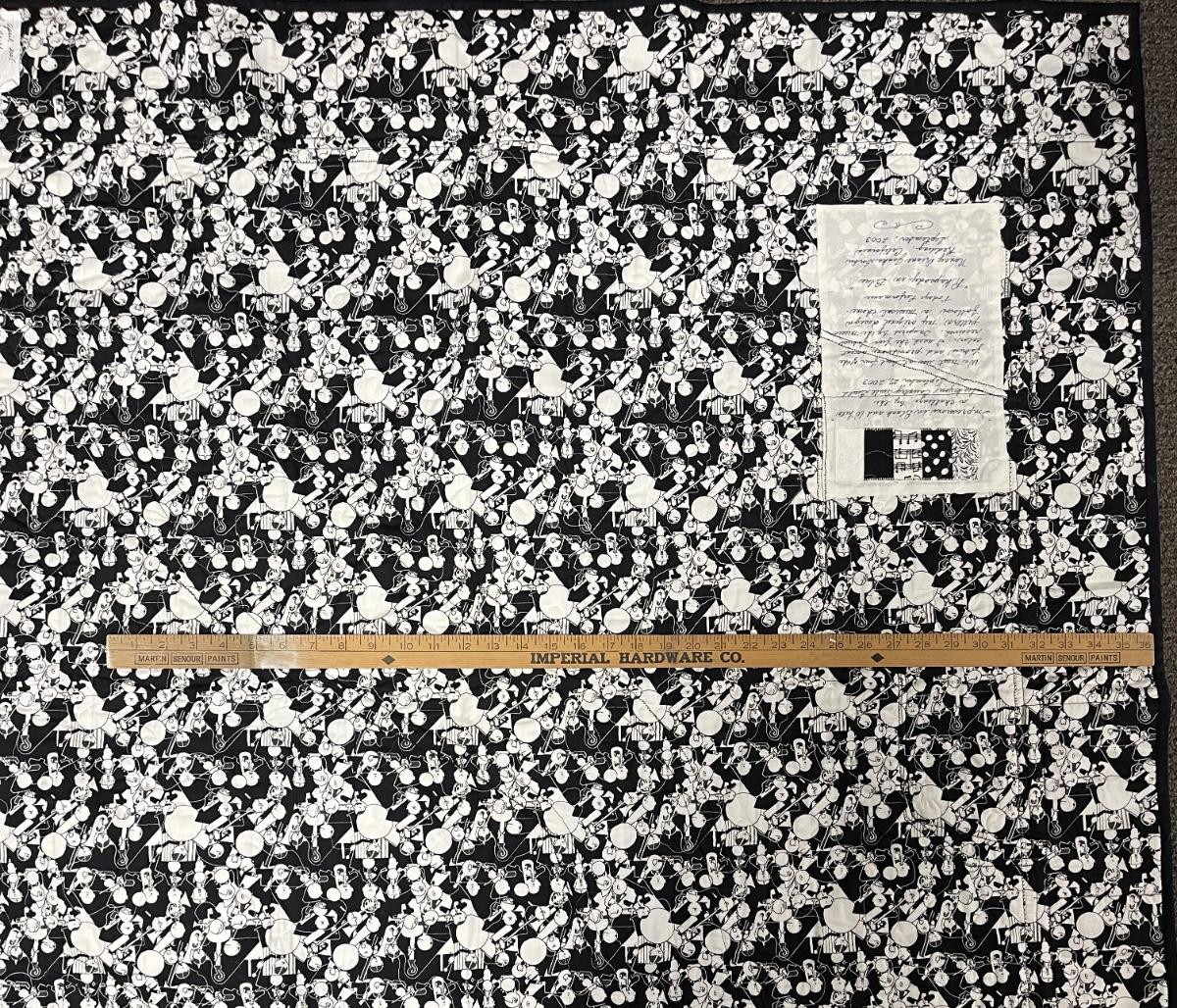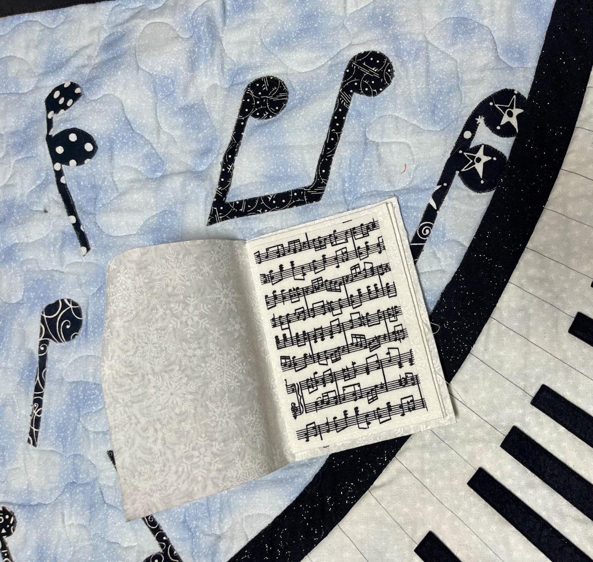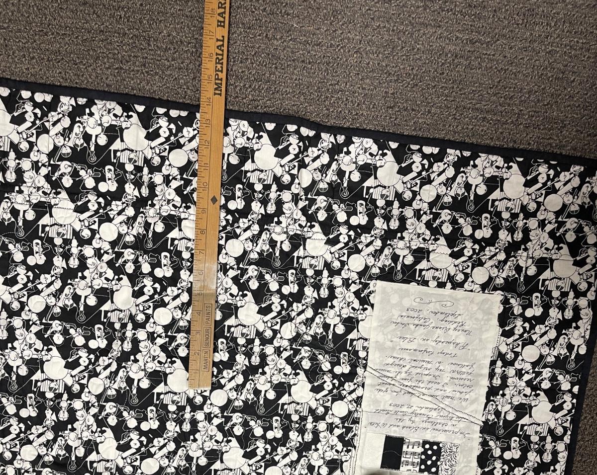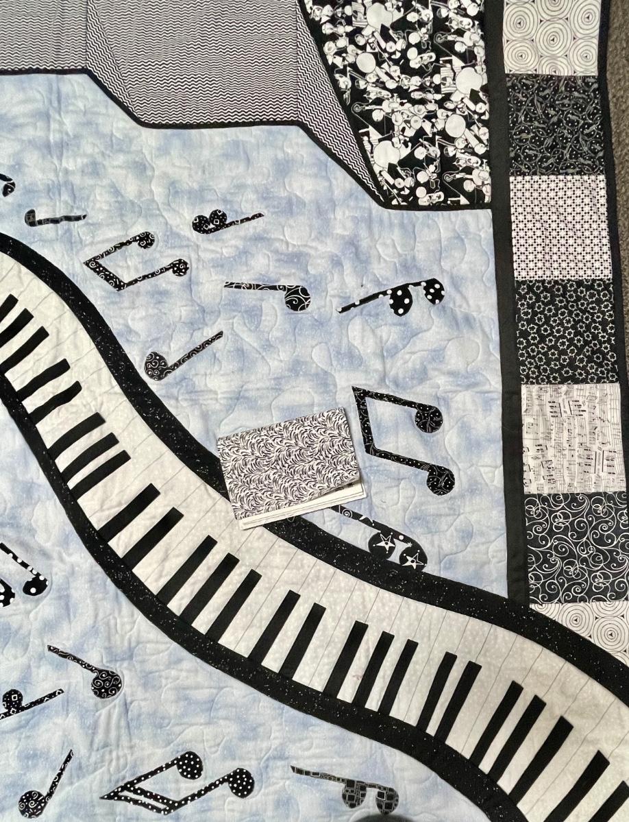 Award-winning quilt from Redding, California. Music-themed quilt measures approx. 48” x 49”. Great condition.